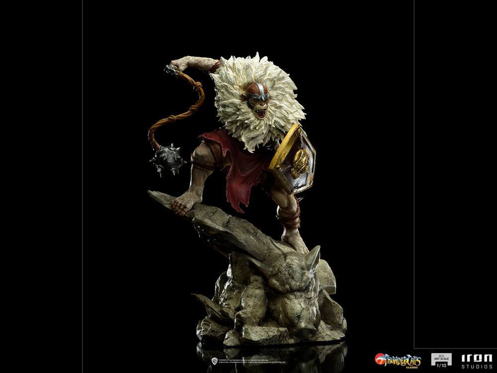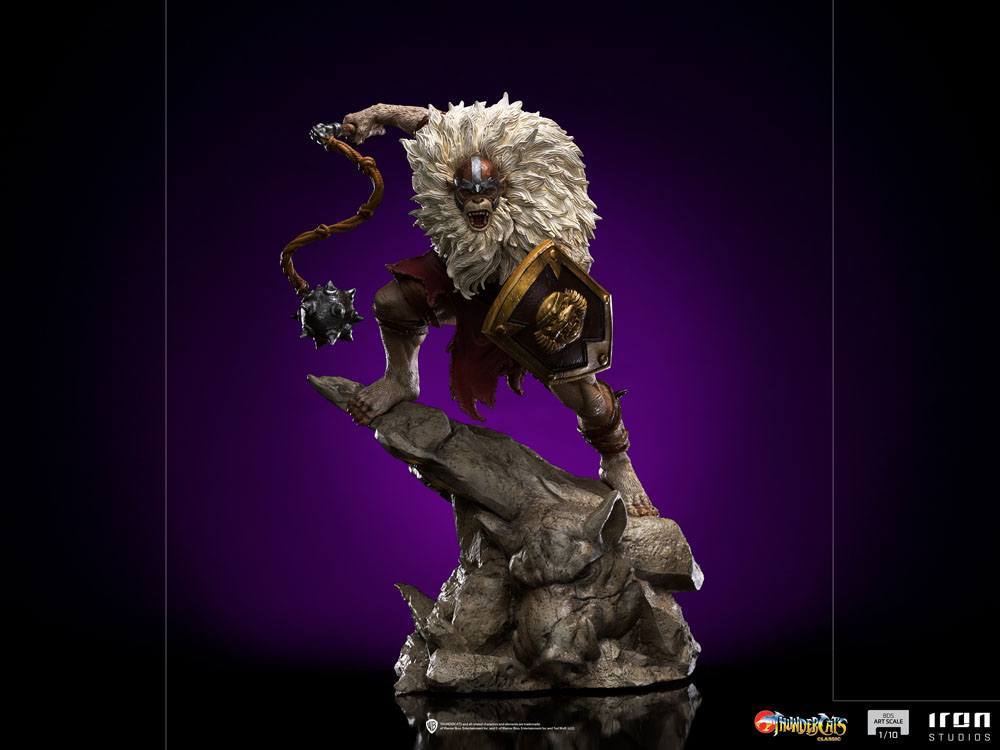 Con 23 cm de altura, esta detallada estatua captura a Monkian, el guerrero simiesco, en una pose dinámica y lista para la batalla. Recreando fielmente su aspecto salvaje, su armadura y su arma, esta pieza encarna a la perfección la fuerza y la brutalidad de uno de los enemigos más feroces de Lion-O. Una verdadera pieza central para cualquier fan de los Thundercats.