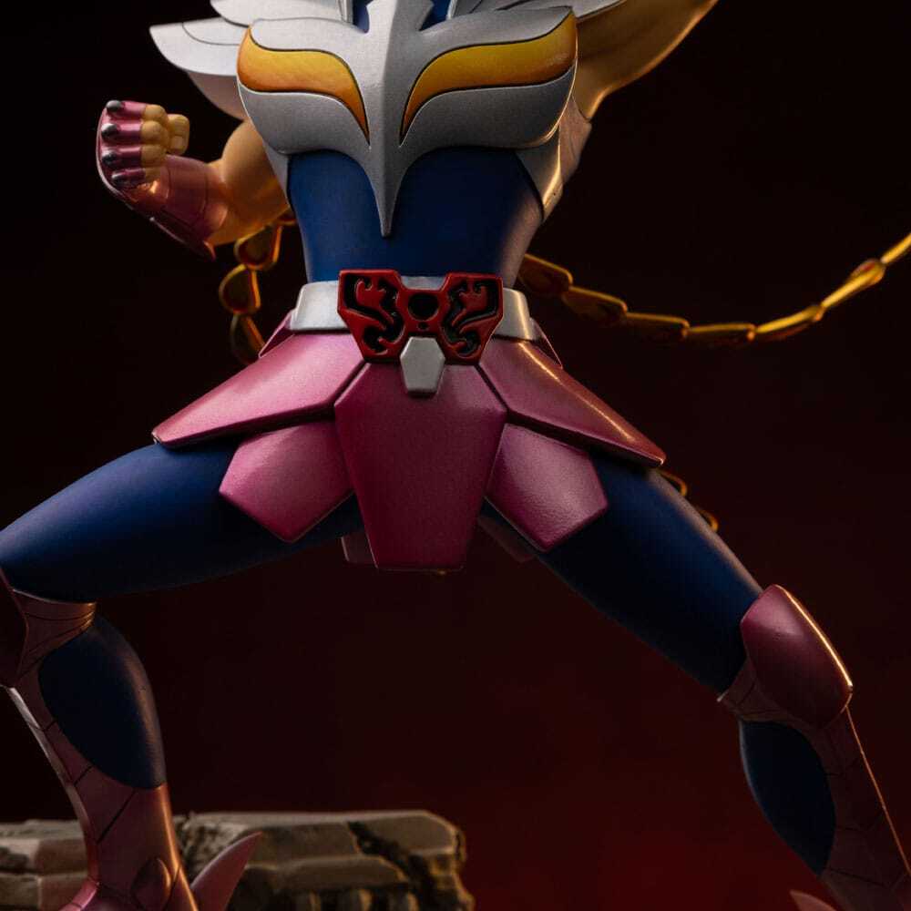 La estatua Phoenix Ikki - Los Caballeros del Zodiaco - 10 de Iron Studios se producirá en edición limitada. La base del diorama presenta ricos detalles inspirados en las referencias originales.