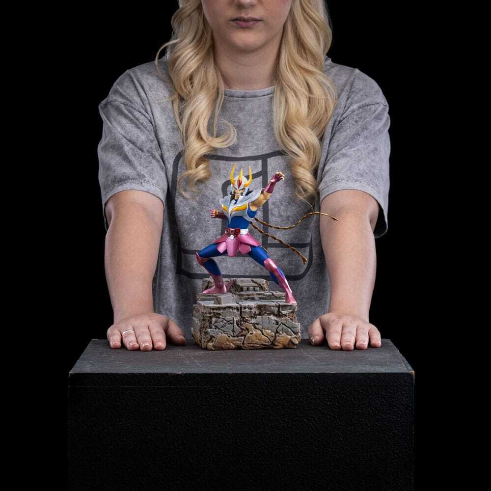 Noble, complejo y maduro, siempre dispuesto a sacrificar su vida por sus amigos cuando es necesario, el más poderoso y furioso de los Santos de Bronce se yergue en los escalones de piedra del Santuario de Atenea, la diosa protectora del mundo de los hombres, a quien sirve y protege fielmente. Preparado para la batalla, ha despertado su séptimo sentido, lo que lo sitúa entre los Santos Dorados y los Jueces de Hades en cuanto a poder y habilidad. Iron Studios presenta con orgullo la estatua "Phoenix Ikki - Los Caballeros del Zodiaco - Escala de Arte 1 ", con el Santo que, al igual que en la leyenda del ave con la que se asocia, gana poder cada vez que muere y renace, sobre una base formada por los escalones derruidos del Santuario. Iron Studios también trae la versión Deluxe "Phoenix Ikki - Los Caballeros del Zodiaco - Escala de Arte Deluxe 1 ", sobre una base que presenta el avatar del mítico pájaro inmortal que resurge de las cenizas y nombra la constelación que representa.