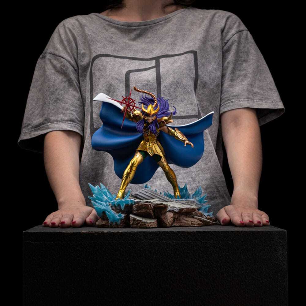 Explorando la estatua de Milo de Escorpio, noble, preciso e inquebrantable, el Santo Dorado de Escorpio se yergue listo para atacar con precisión letal, un verdadero protector del Santuario de Atenea, la diosa a la que sirve fielmente. Listo para la batalla, Milo demuestra la maestría y la habilidad que lo sitúan entre los Santos Dorados más formidables. Iron Studios presenta con orgullo la estatua "Milo de Escorpio - Los Caballeros del Zodiaco - Escala de Arte 1", que captura al Santo en una pose dinámica, con su capa ondulante y su armadura dorada reluciente, listo para desatar su característico ataque , la Aguja de Escorpión. La estatua se exhibe sobre una base detallada que evoca la atmósfera sagrada y misteriosa del Santuario.