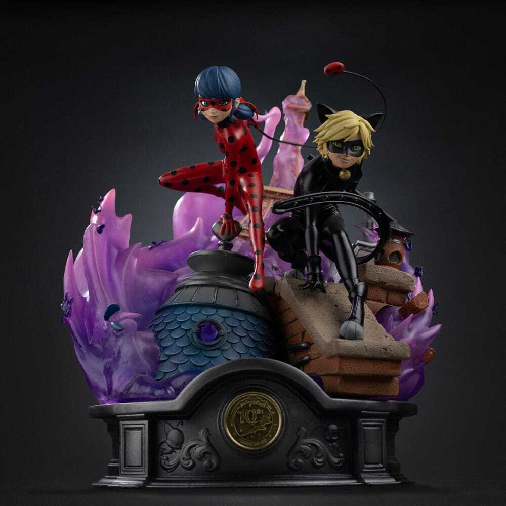 Figuras Art Scale Deluxe Lady Bug Y Cat Noir, Edición Firmada, 23 Cm - Iron Studios Miraculous