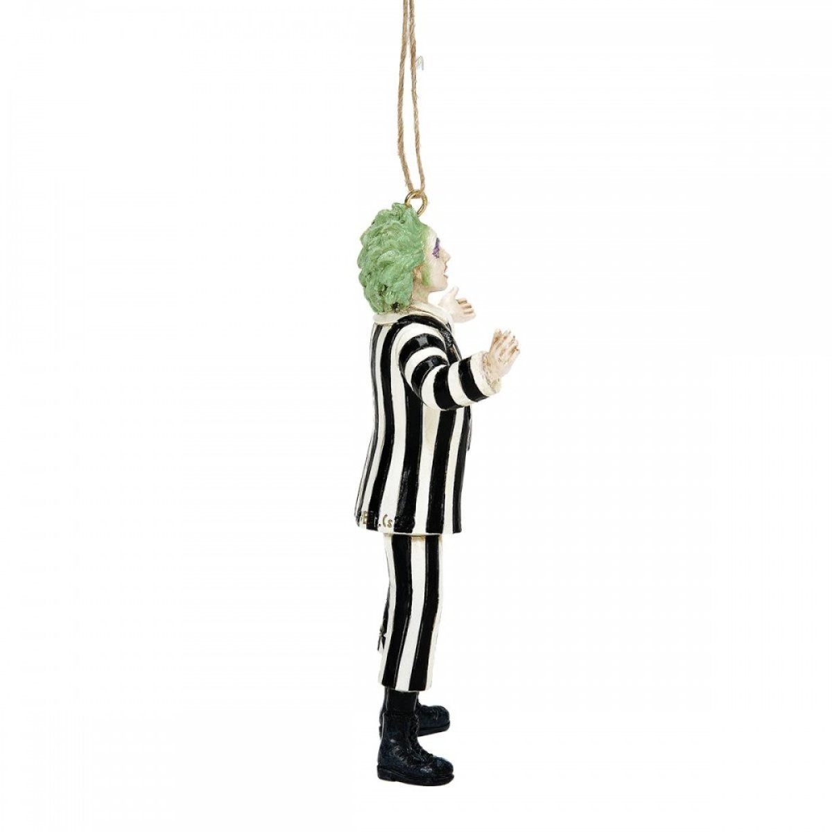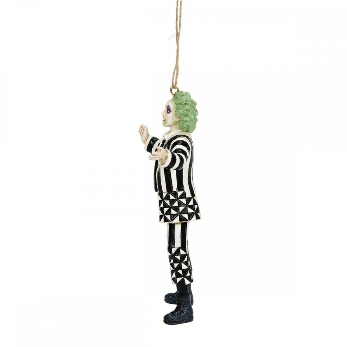 Suspensión del icónico bioexorcista de la película de Tim Burton de 1988, con un toque de Jim Shore . Fabricado en piedra fundida de alta calidad y pintado a mano. Este colgante representa al personaje principal, Beetlejuice, suntuoso con su disfraz y listo para ponerse a trabajar cazando a los vivos. Diseñado por el galardonado artista y escultor Jim Shore para la colección Beetlejuice. Estas figuras no son juguetes para niños. Destinado únicamente a adultos.