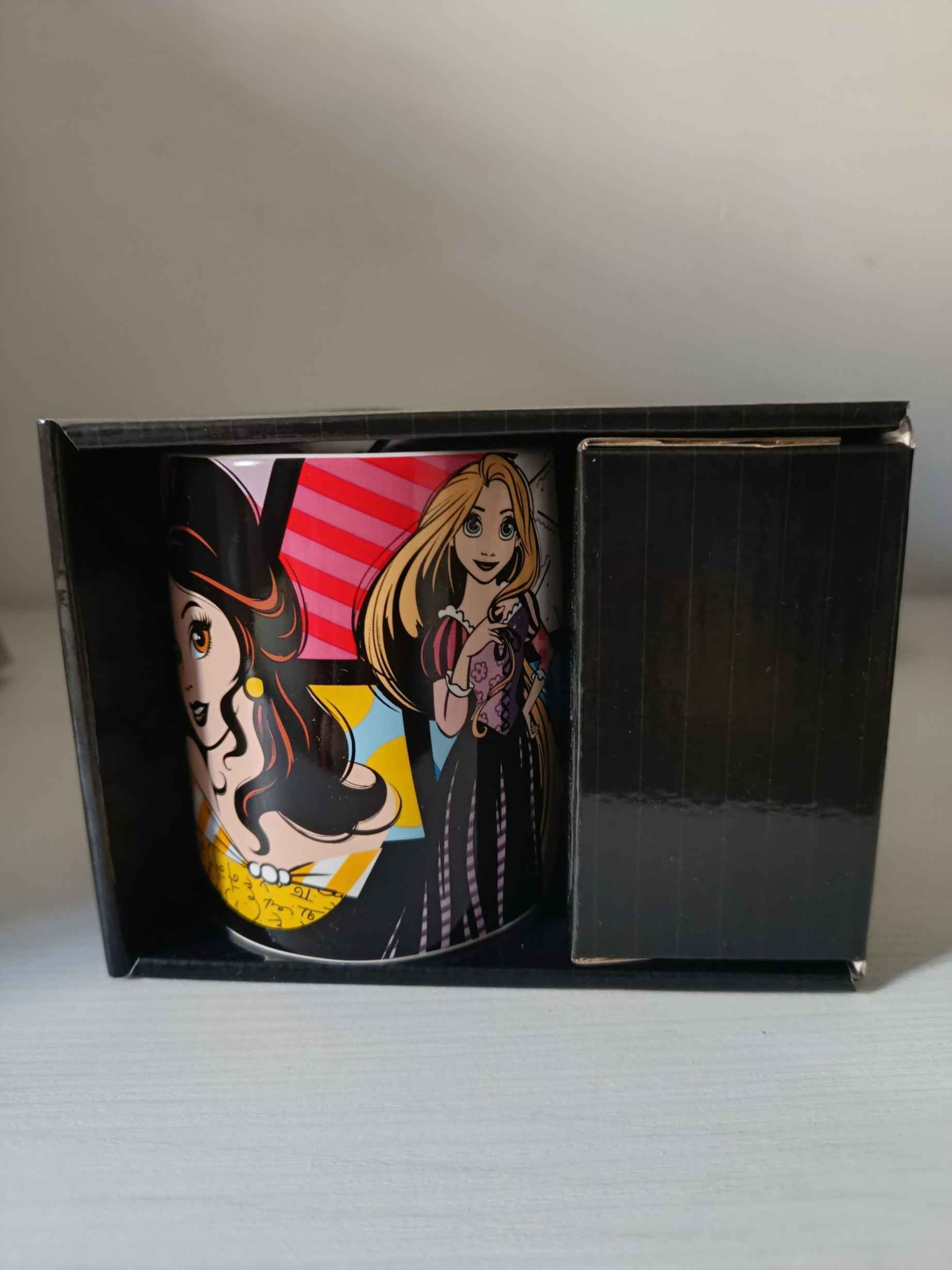 La taza Princess de Disney Britto es un artículo llamativo para el hogar que combina los diseños icónicos de los personajes de Disney con el llamativo estilo artístico de Romero Britto. Con Blanca Nieves, Jasmin, Bella y Enredados sobre un fondo de patrones y colores atrevidos, esta moneda es el regalo perfecto tanto para los amantes de Disney como para los fanáticos de la obra icónica de Romero Britto. El mango en forma de corazón y la firma en el borde interior hacen de esta pieza un artículo verdaderamente único adecuado para cualquier hogar.