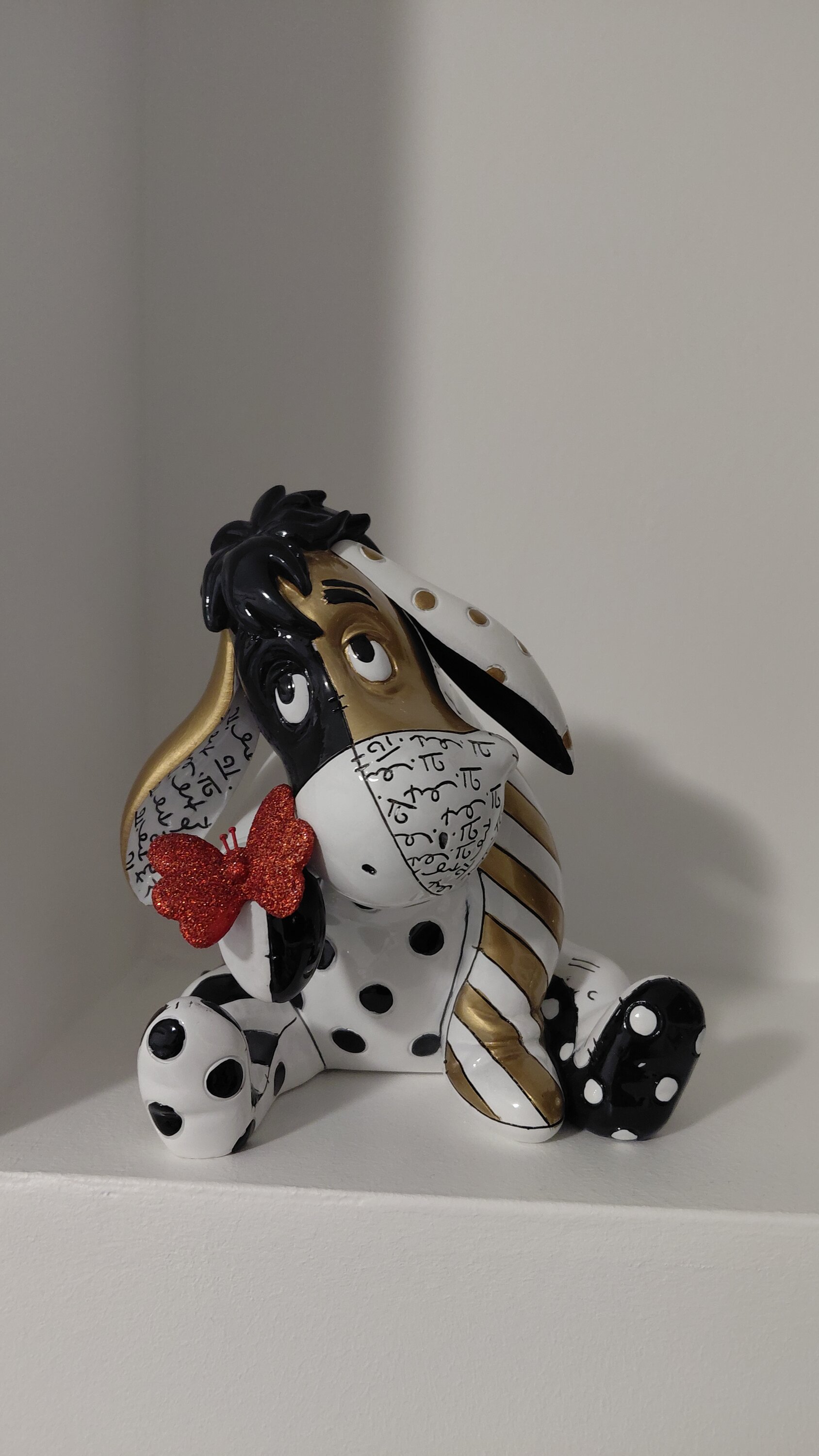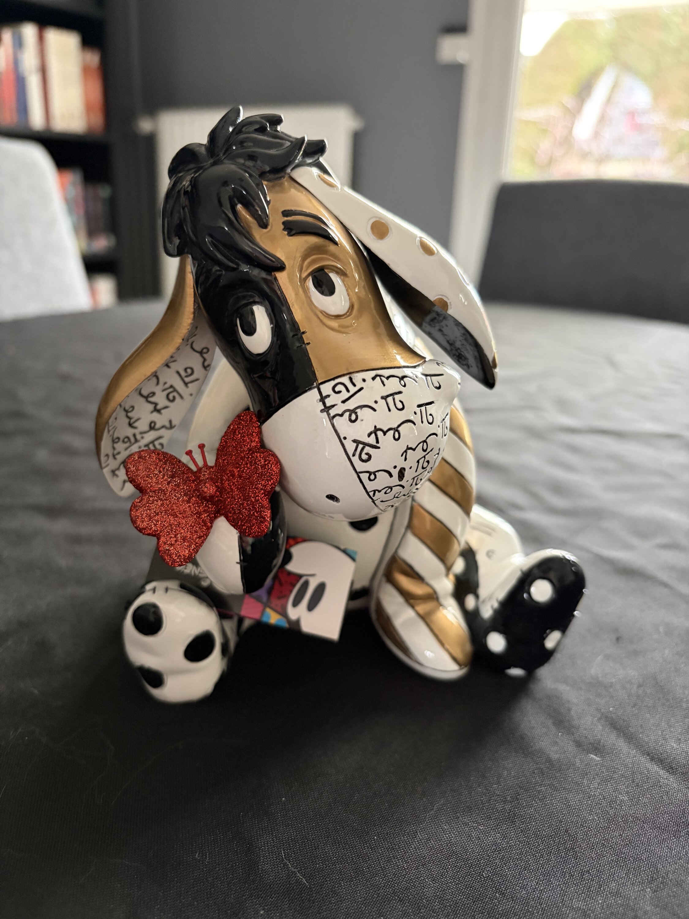 En honor al centenario de Winnie the Pooh, Ígor recibe el toque Midas del artista pop Romero Britto en esta nueva escultura que presenta a tu burro favorito en oro intenso, negro intenso, rojo rubí y blanco brillante. Disponibilidad limitada.