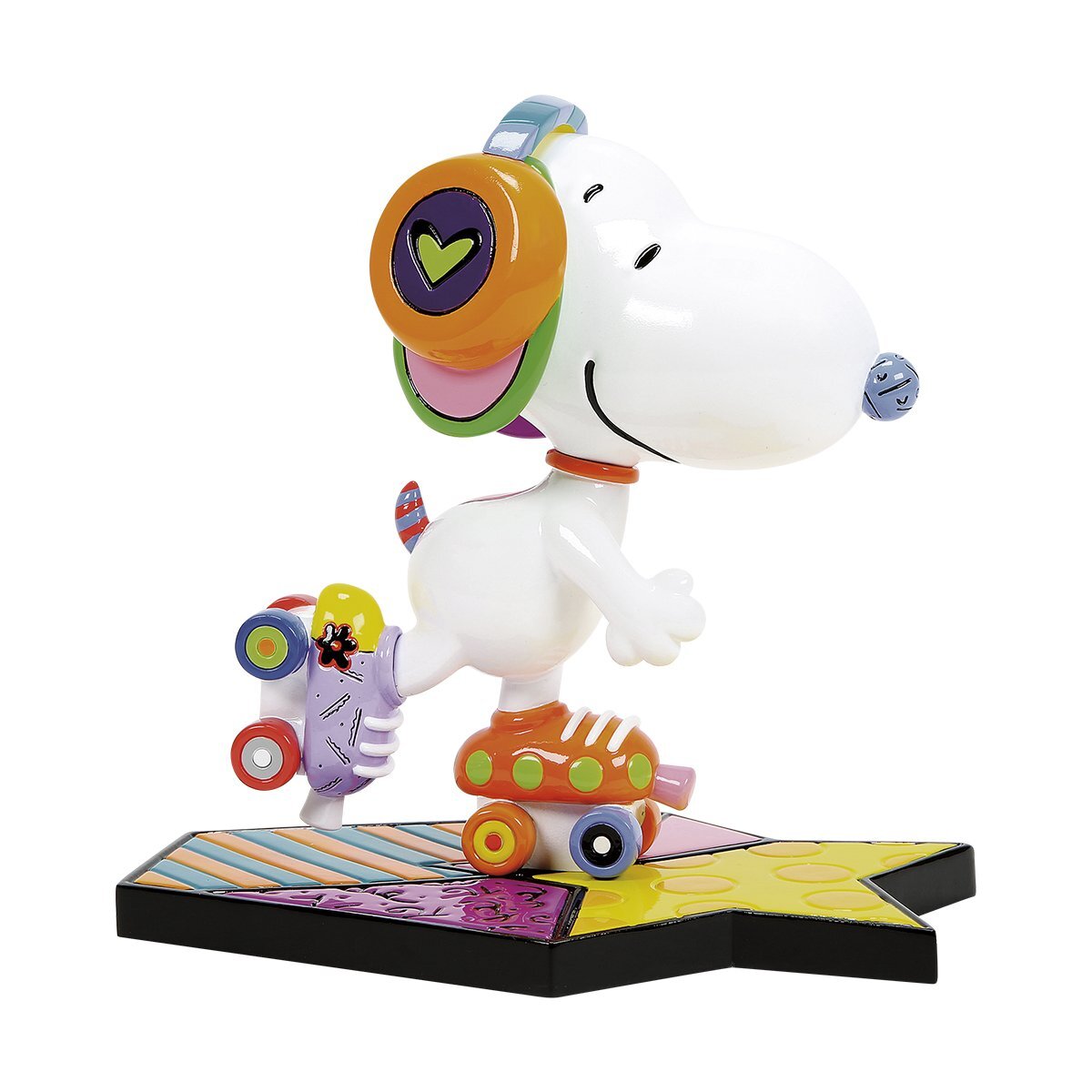 Snoopy es la imagen de la felicidad mientras patina por South Beach en Miami con patines Britto de colores y auriculares, escuchando las melodías boogie woogie del verano.