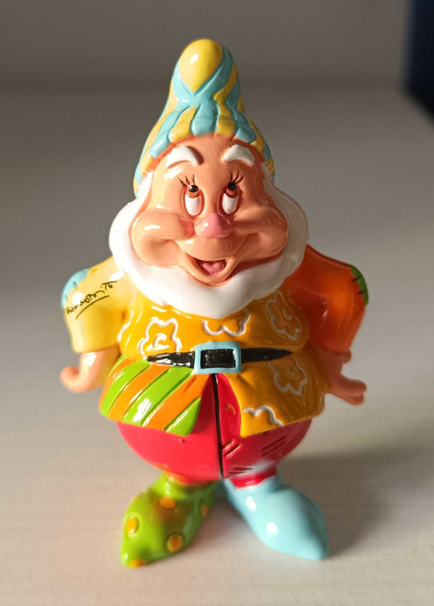 Romero Britto reinventa este clásico personaje de "Blancanieves y los siete enanitos". Feliz recibe una actualización con muchos diseños brillantes, atrevidos y coloridos.