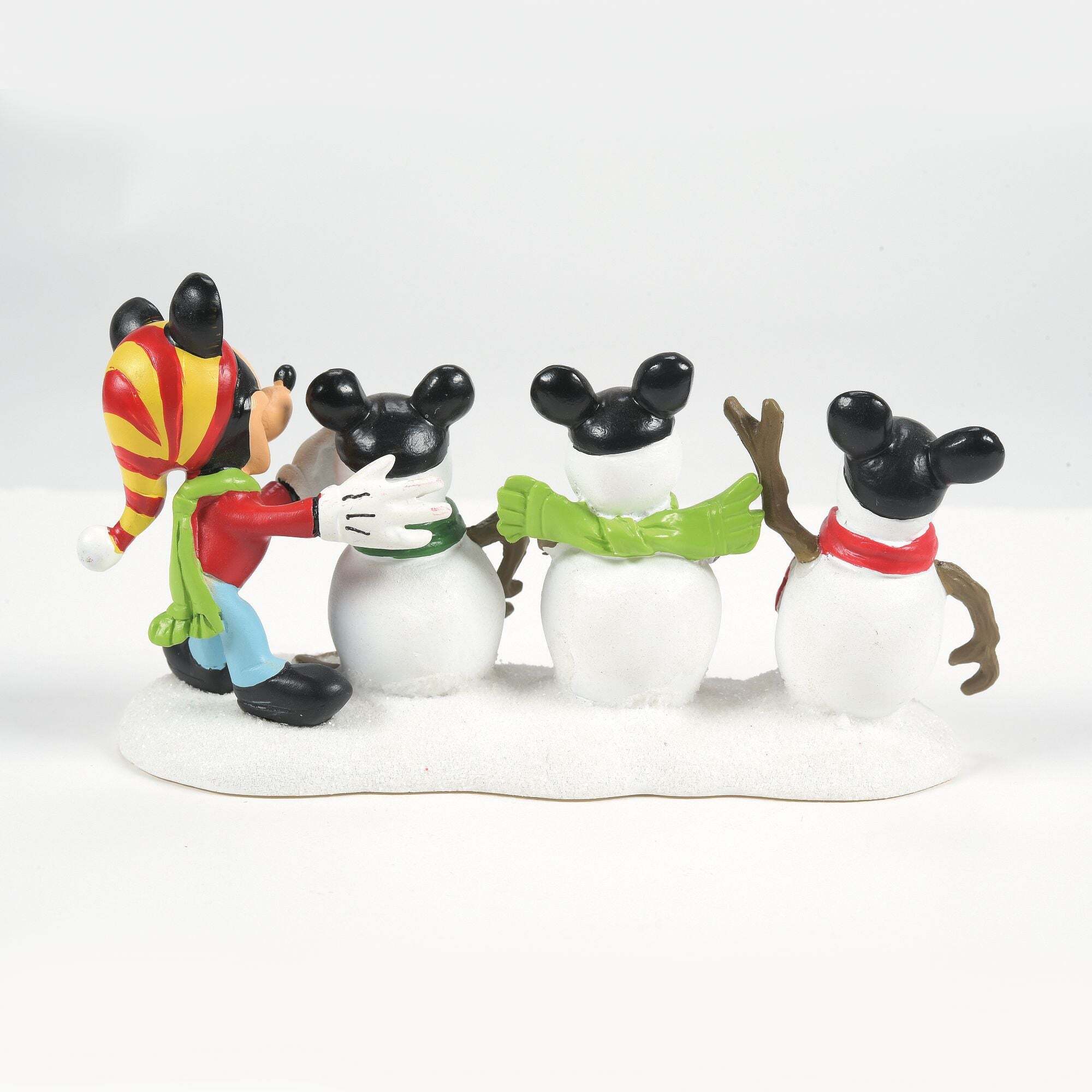Esta figura de resina pintada a mano presenta a un Mickey Mouse clásico, con un gorro y una bufanda a rayas, dando los toques finales a sus tres muñecos de nieve. En lugar de los gorros tradicionales, cada uno lleva el famoso gorro con orejas de Mickey Mouse . Estos artículos no son juguetes para niños. Destinados exclusivamente para adultos. Altura: 5,5cm