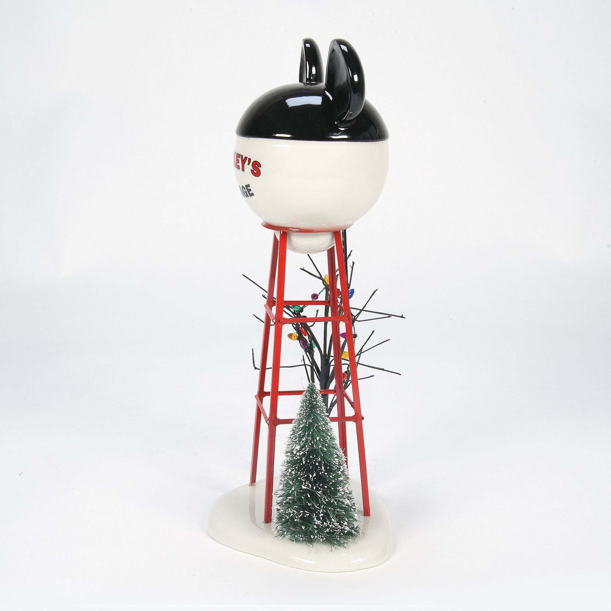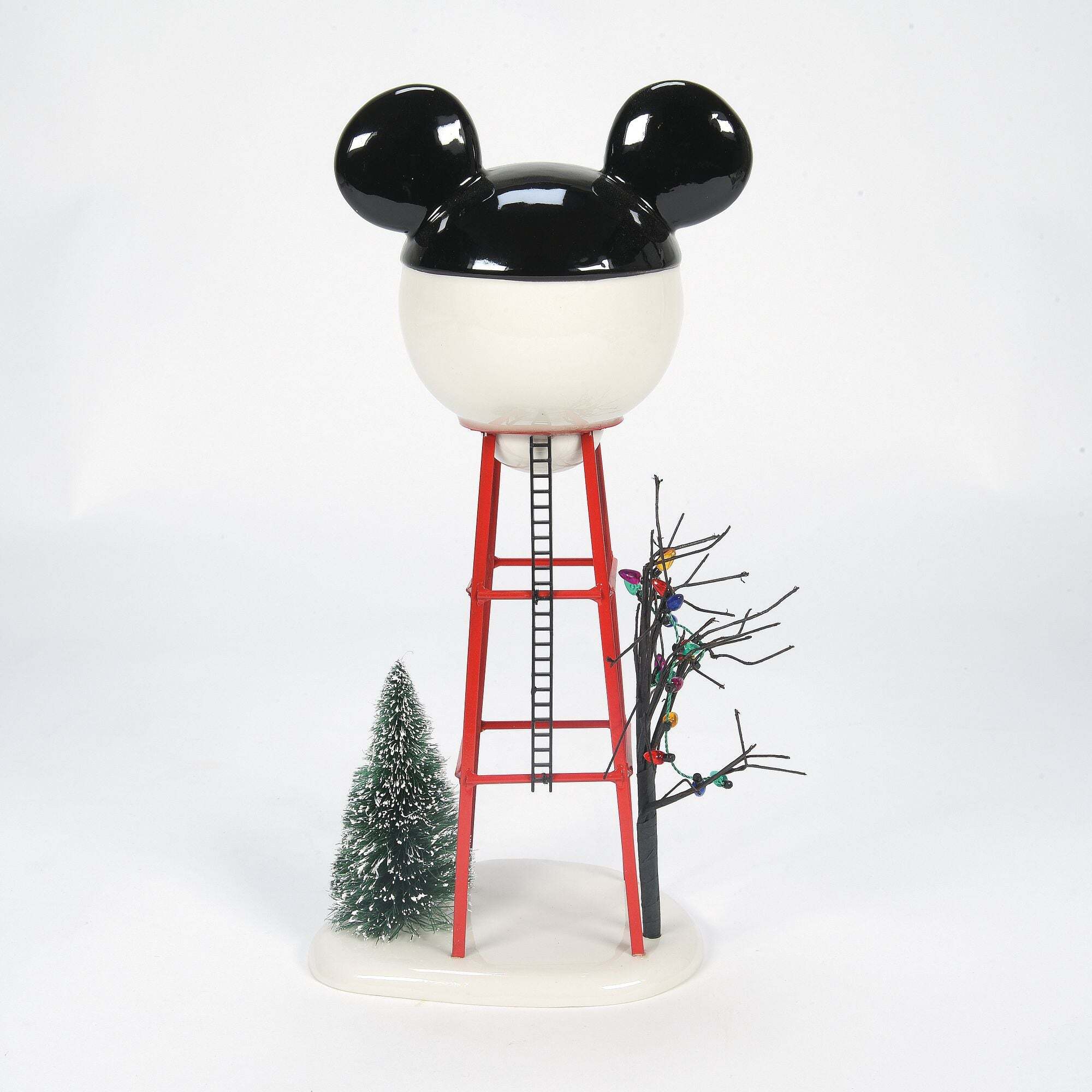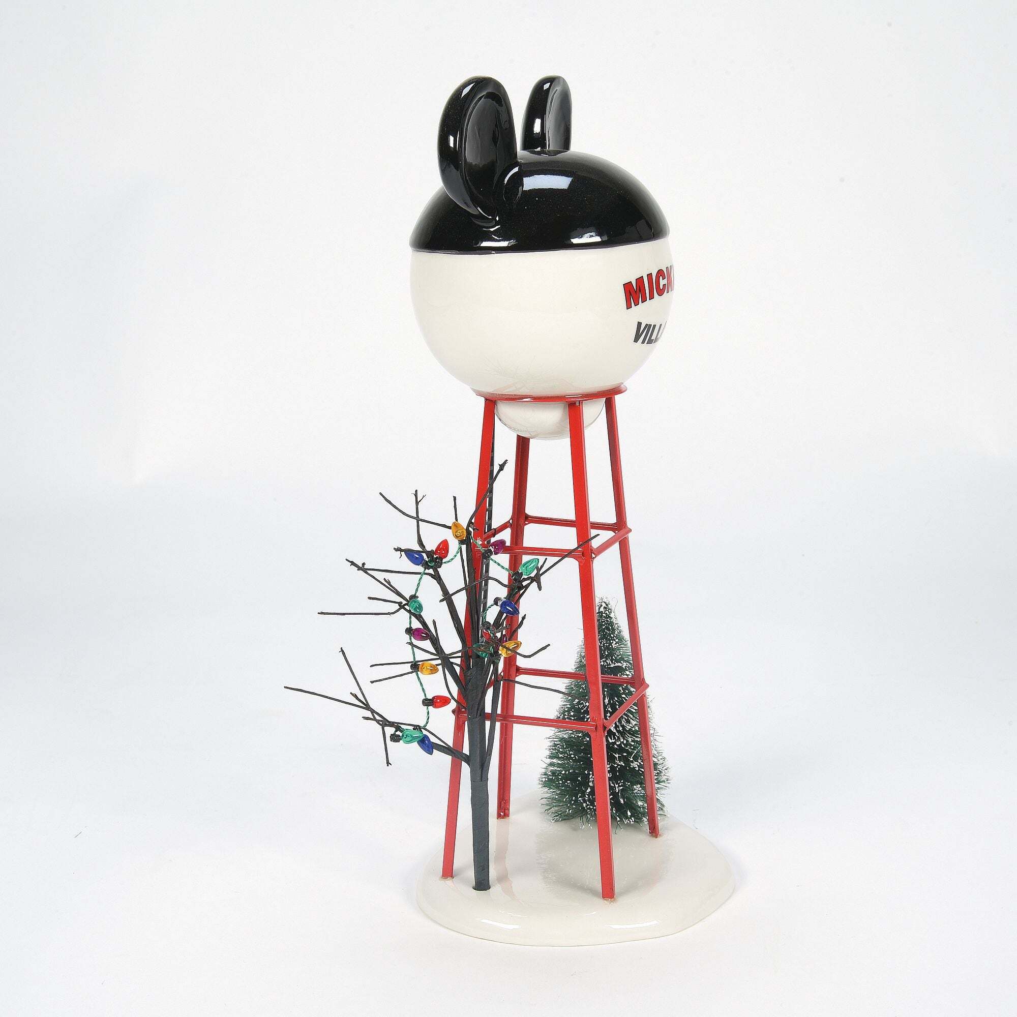 La Aldea Navidad de Mickey trae la magia de las fiestas a tu hogar con detalles meticulosos. Una torre de agua coronada con las famosas orejas de Mickey da la bienvenida a todos a su aldea.