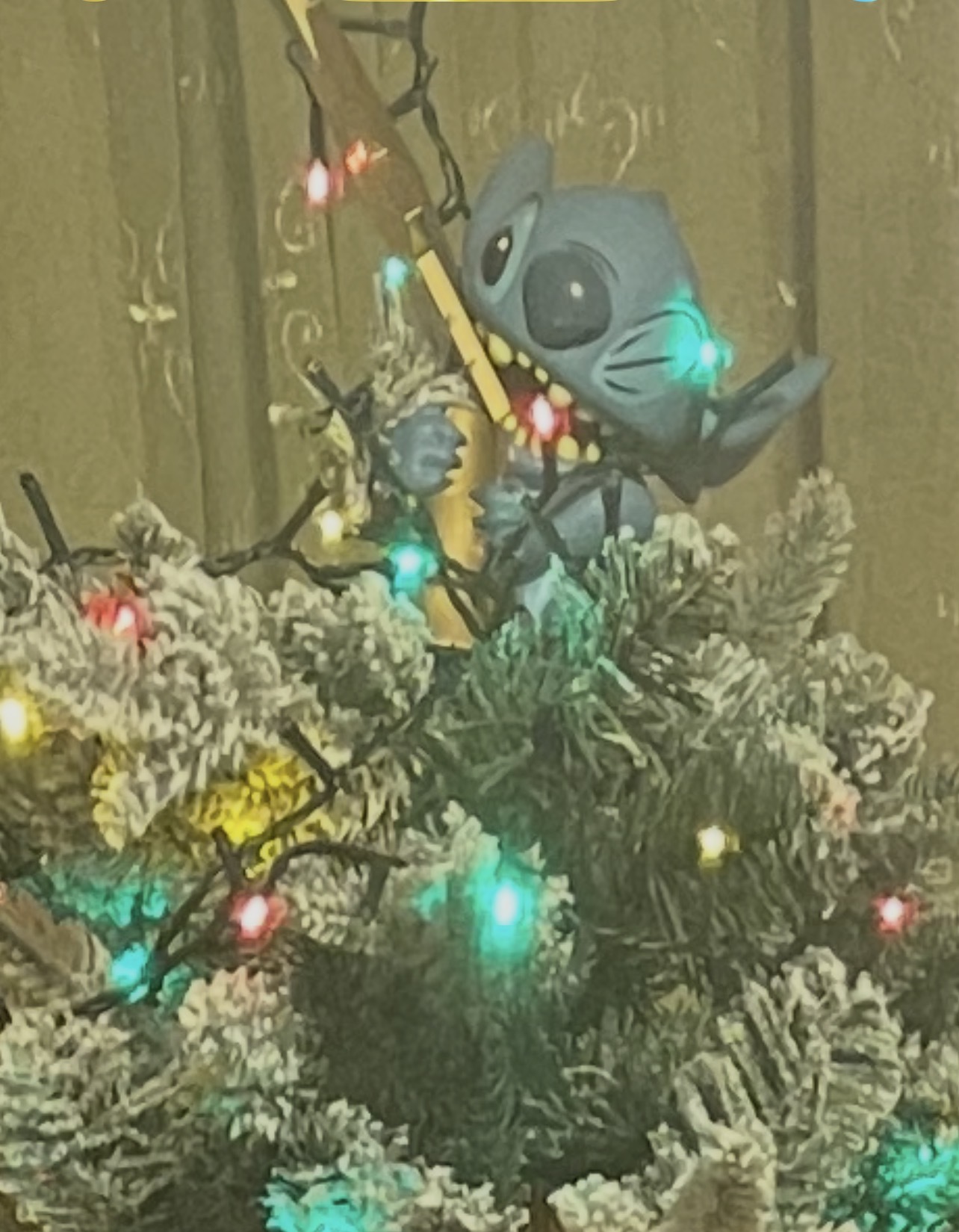 Decoración de puntada para Stitch de árbol. Ningún adorno Navidad está a salvo mientras Stitch esté cerca. Encantado con las luces, los sonidos y los olores de la Navidad, Stitch quiere ayudarte a decorar tu árbol de Navidad .