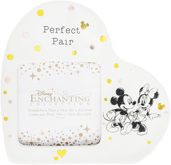 Marco de fotos en forma de corazón de Mickey y Minnie de la colección Enchanting Disney . Tu foto estará junto a los dos enamorados, tomados de la mano.