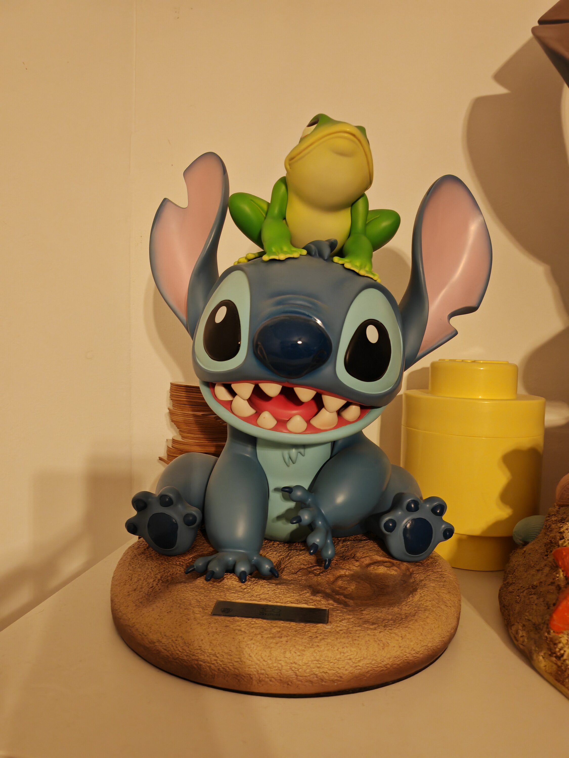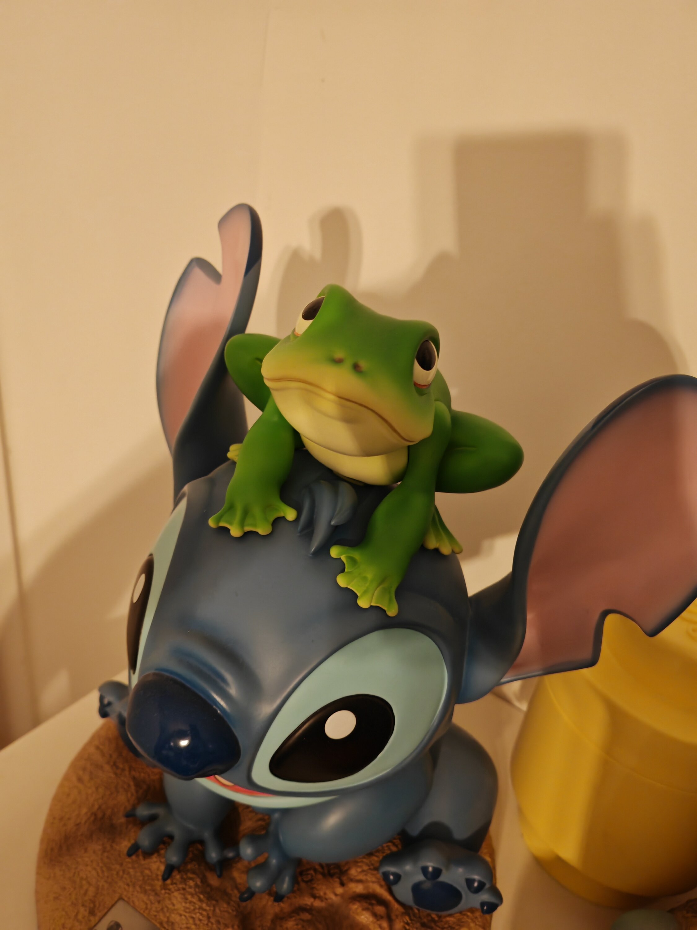¡Qué lindo! Aún más hermoso en la vida real cuando se fotografía. Stitch es sublime y la rana también Estatua impecable... Entregado rápidamente, ¡¡¡estoy encantado!!!