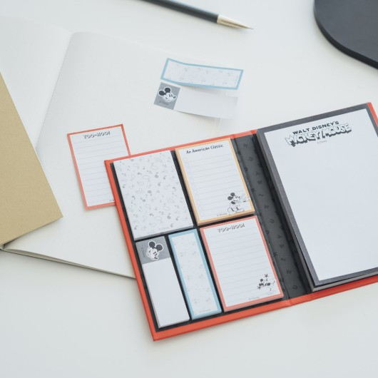 Libreta adhesiva Disney , de la colección Mickey Classic. Formato A6. Dimensiones: 11 x 15,5 cm. Incluye 1 bloc de notas y 5 blocs de notas adhesivas diferentes.