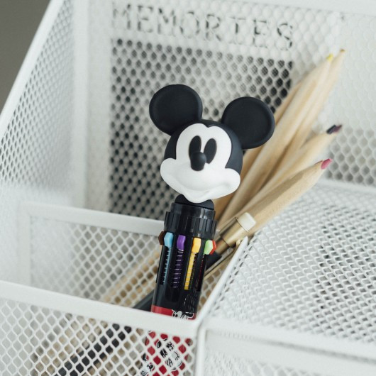 No es el típico bolígrafo multicolor... es grande, con el cuerpo decorado, un montón de colores (que se cambian presionando la cabeza de Mickey, otro toque original) y la alegre carita de Mickey sonriéndote. Me da muchísima alegría y me hace sentir como una niña de nuevo, cuando estaba deseando hacer mis tareas con un bolígrafo nuevo. 😊