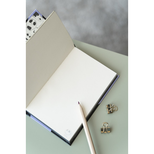 Cuaderno A6 de tapa dura. Cuenta con una cubierta laminada mate, páginas con puntos personalizados, esquinas rectas, encuadernación pegada y marcador de cinta. Contiene 90 hojas (180 páginas) de 100 g/m2.