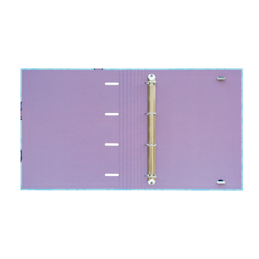 Carpeta con 4 anillas de 35mm, tapa de cartón rígido de 2mm recubierta de papel de 150gr con acabado mate, cierre elástico de 9mm e interior de diseño personalizado. Fabricado bajo licencia oficial.