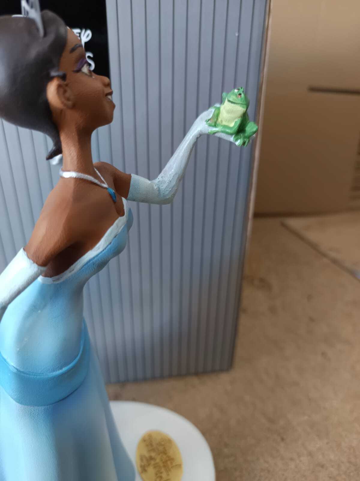 Esta escultura de Tiana de edición limitada, pintada a mano y elaborada con maestría, de La Princesa y el Sapo, proviene de una maqueta animada sin pintar de la colección de la compañía. Los moldes de producción se elaboran a partir de un escaneo digital tridimensional. Hecha de resina de piedra, esta figura de Tiana mide aproximadamente 26 cm de alto.