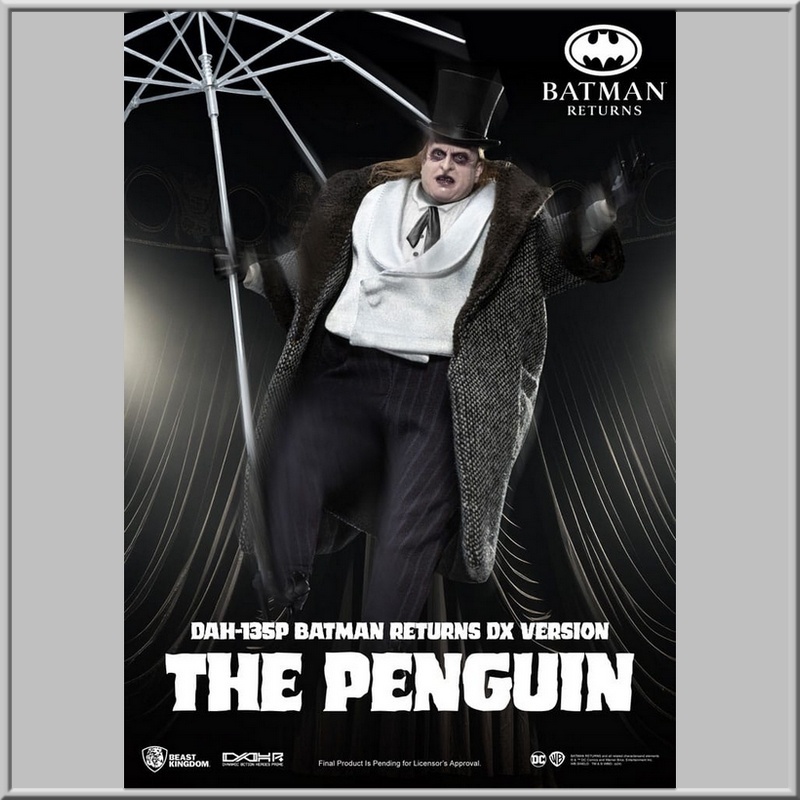 Imprescindible para los fans y coleccionistas de Batman Returns, esta figura de Penguin DX encarna la astucia, el carisma y la inolvidable amenaza del cerebro criminal de Gotham. ¡Añádela a tu colección... si te atreves!
