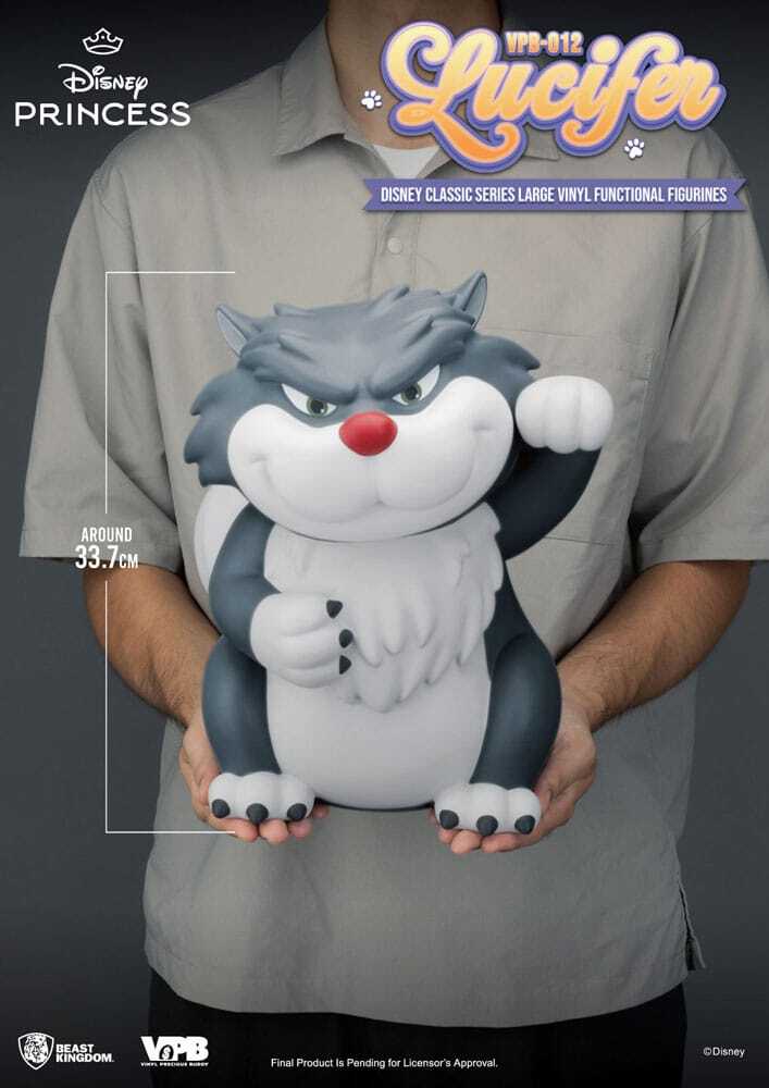 Esta hucha de vinilo de 33 cm presenta a Lucifer, el travieso gato de Cinderella, con un diseño divertido y detallado. Perfecta para niños y fans de Disney, fomenta el ahorro mientras añade un toque decorativo a cualquier habitación.