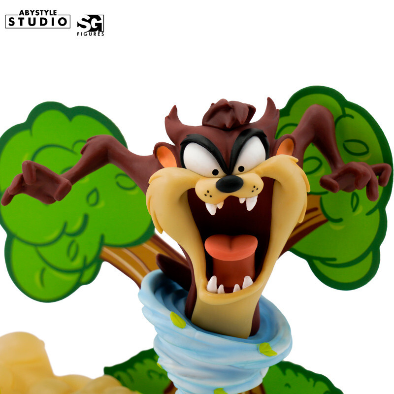 ¡Cuidado! Taz lo está arrasando todo antes de unirse a la colección SG de ABYstyle Studio. En un torbellino de caos, los bulliciosos Looney Tunes traen un auténtico tornado de risas a la pantalla y, ahora, a tu colección. Esta dinámica figura representa al famoso demonio de Tasmania en la selva, buscando su próxima presa. ¡Agárrate fuerte, es la hora de la Taz-Manía!