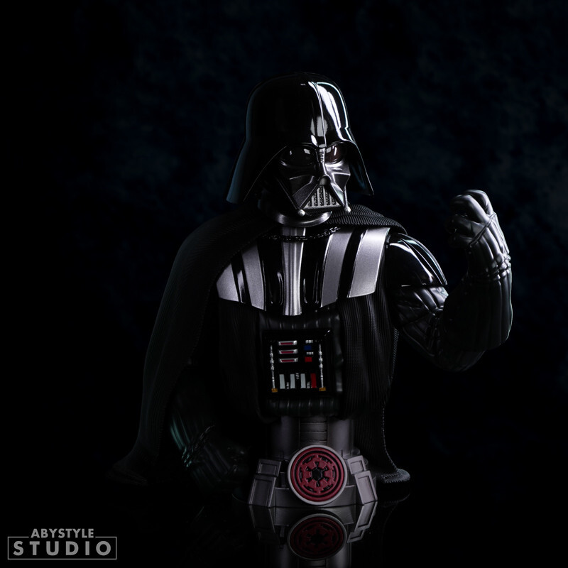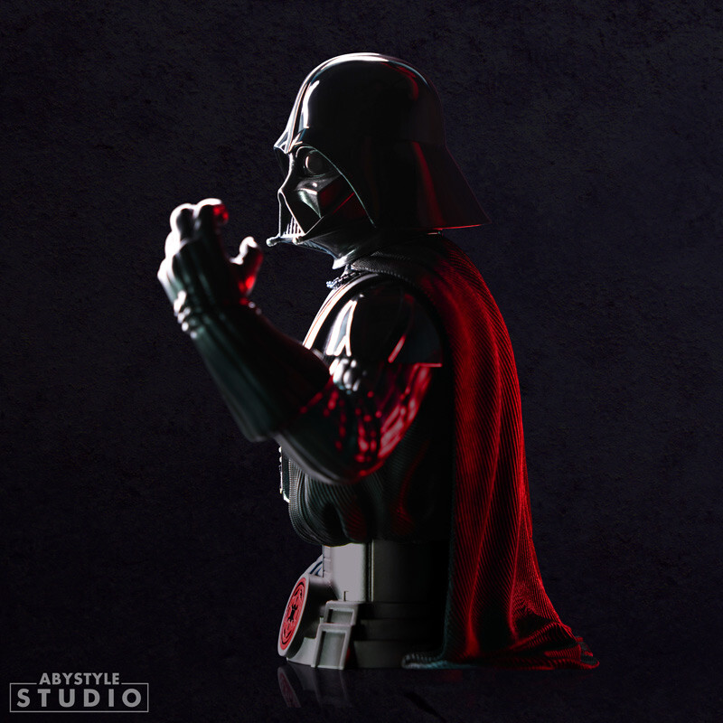 ¡Únete a las filas del Imperio y abraza el poder del lado oscuro de la Fuerza con este busto de Darth Vader! Como homenaje al Lord Sith, este busto marca el debut de la nueva gama SB6 de ABYstyle Studio. Reproducida meticulosamente a escala 1, la porte natural de Darth Vader está fielmente esculpida en esta estatuilla de sorprendente detalle, añadiendo profundidad y matices a la representación del Comandante Supremo. La base de este busto de PVC resalta el emblema del Imperio Galáctico, que simboliza el orden y el poder autoritario en la galaxia. ¡Esta figura de Darth Vader, desarrollada para todos los fans del universo de Star Wars , sin duda se convertirá en una pieza central de tu colección!