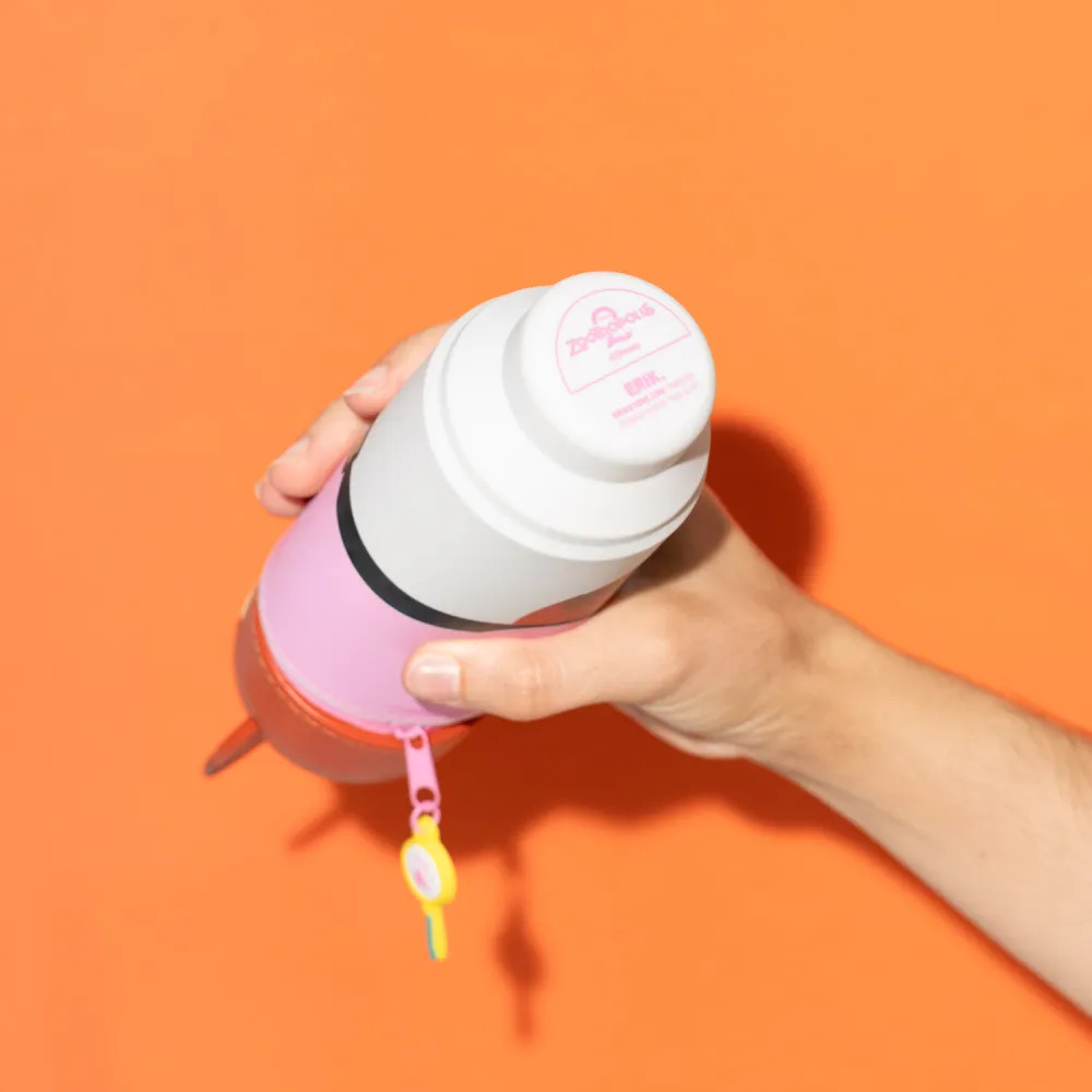 Funda de silicona 3D. Cuenta con cierre de cremallera y tirador personalizable. La base es expandible, lo que permite aumentar tanto su tamaño como su capacidad.