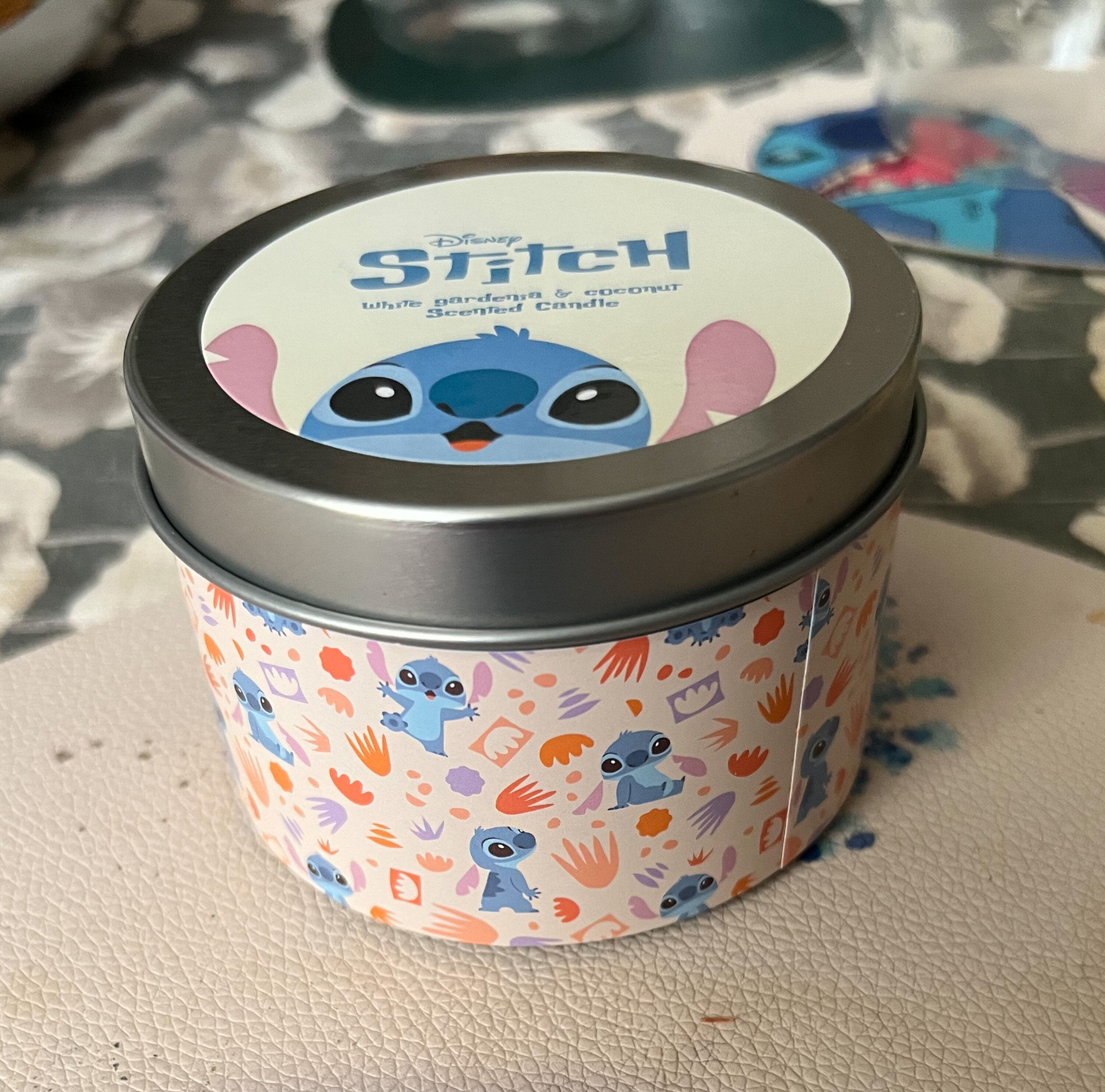 Presentada en una lata de metal bellamente decorada con motivos blancos y amarillos de Lilo & Stitch y una tapa ilustrada con los personajes, esta vela añade un toque decorativo Disney a cualquier habitación. Una vez terminada la vela, la lata se puede reutilizar para guardarla o como pieza de colección.