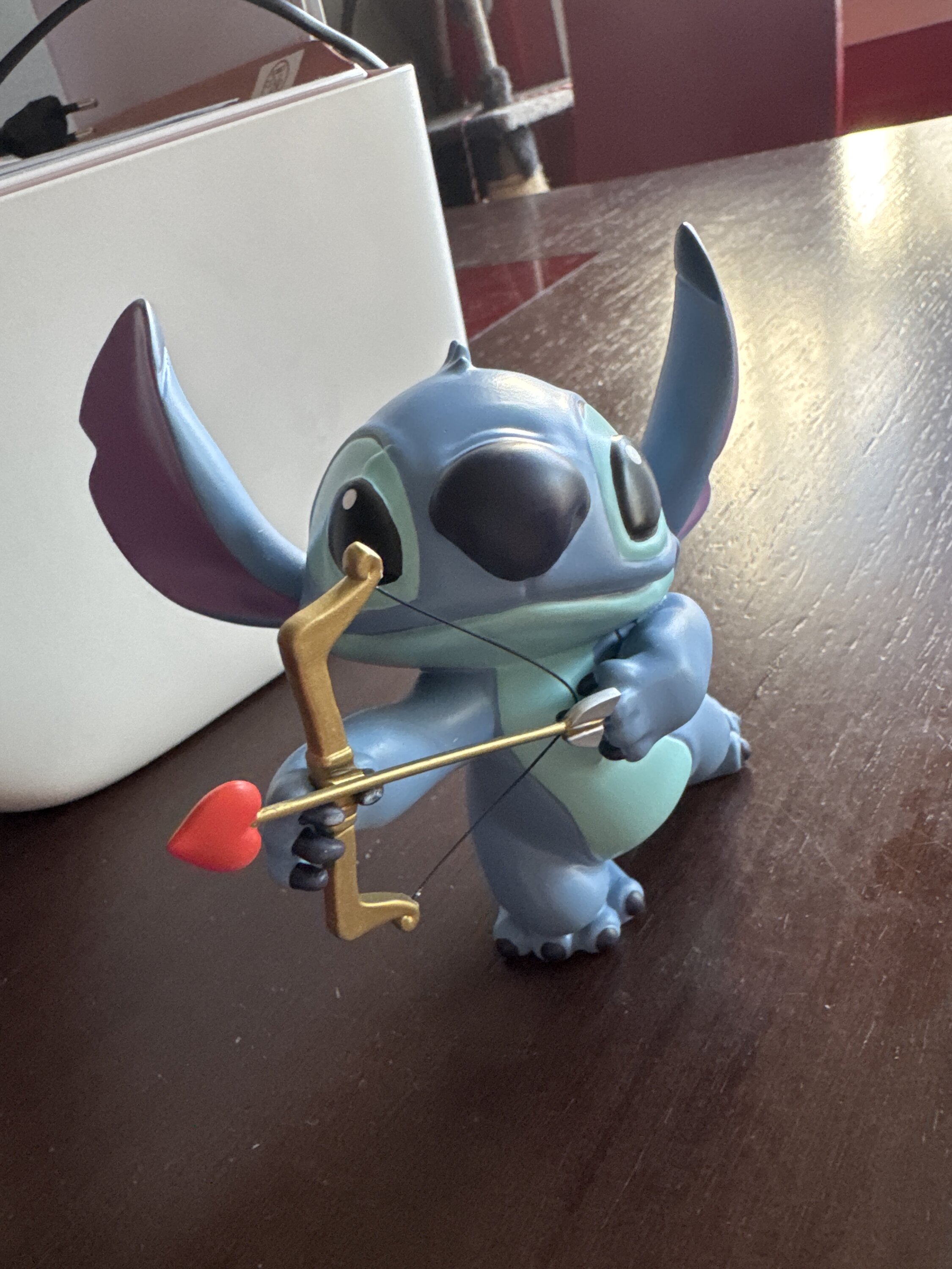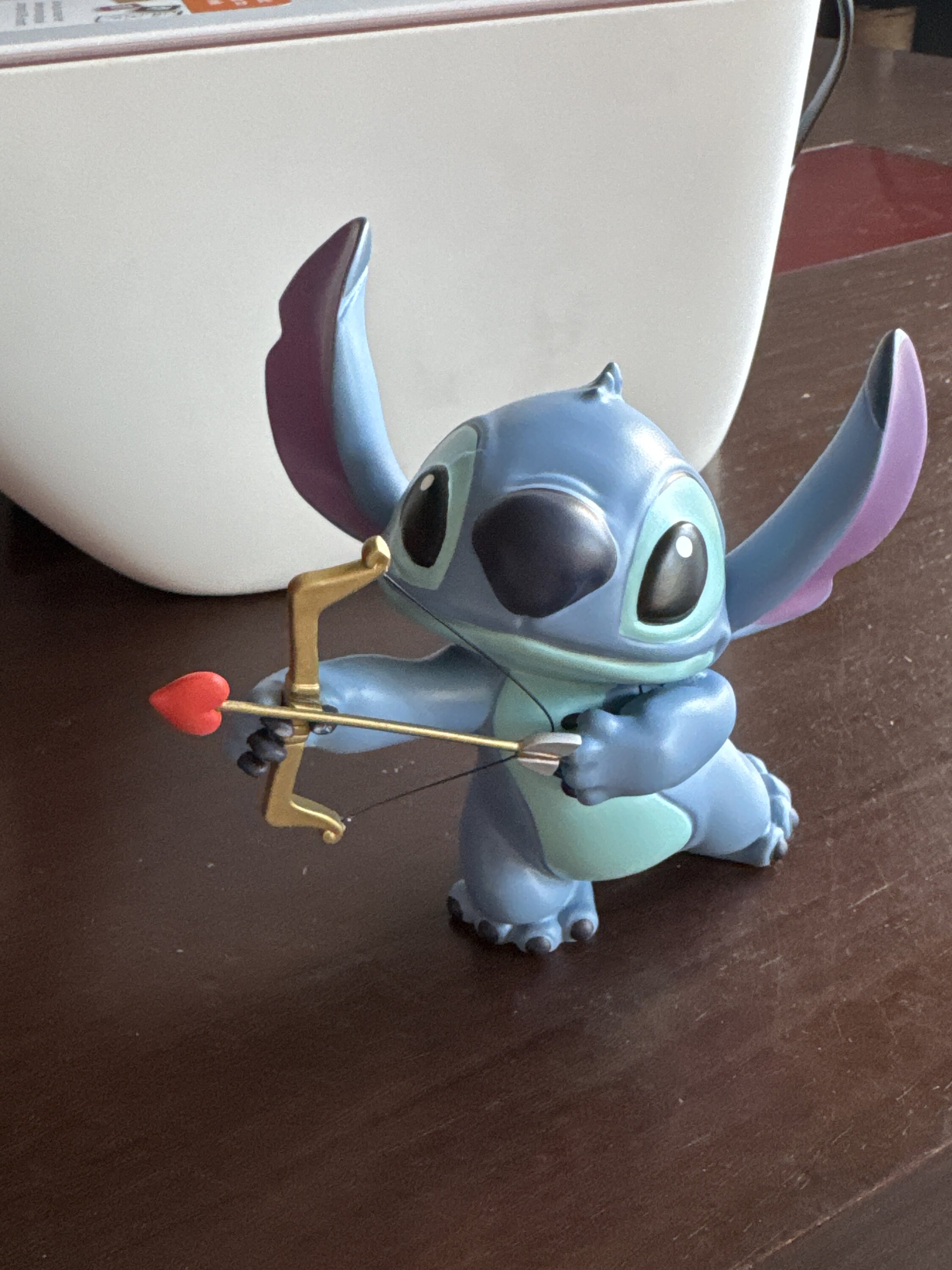 Celebra las fiestas con Stitch, el experimento espacial favorito de todos. Hecho y pintado a mano, Stitch tirará de los hilos de tu corazón vestido como Cupido justo a tiempo para celebrar el Día de San Valentín con tu ser querido.