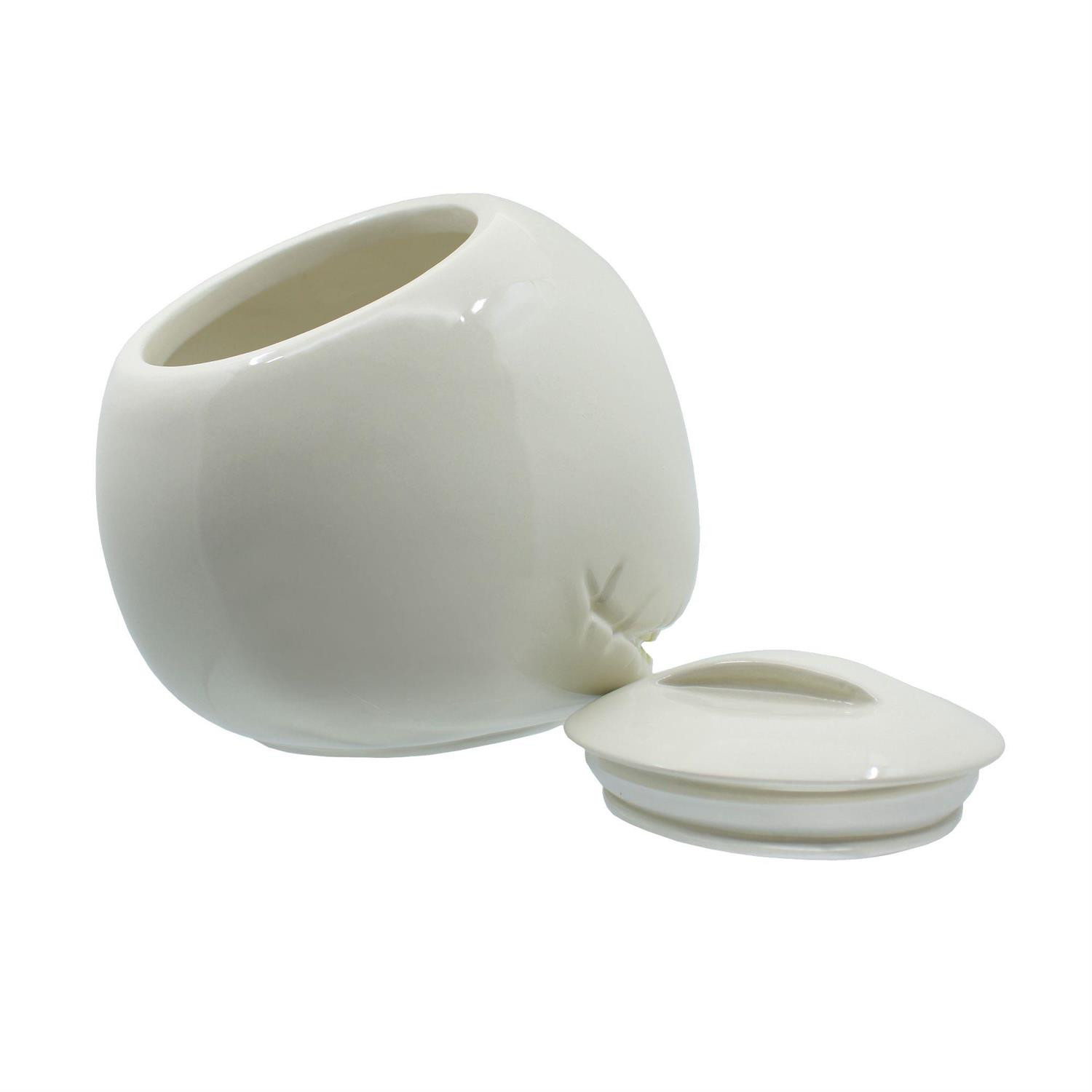 Disfruta de todos tus dulces de Halloween o galletas Navidad en este tarro de galletas de cerámica totalmente esculpido y pintado a mano con la imagen de Jack Skellington. La tapa de silicona mantiene tus dulces dentro y evita que Oogie Boogie se derrame. De la colección Disney Showcase .