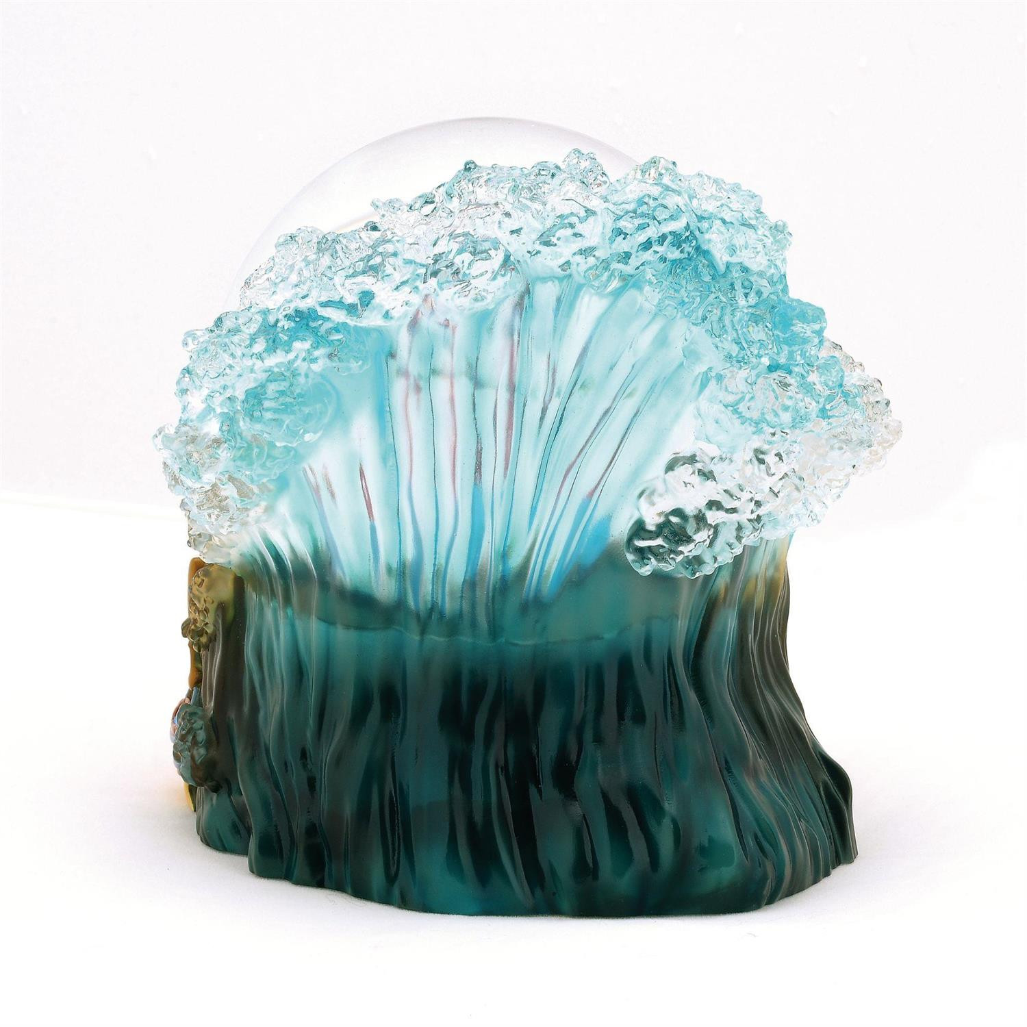 Celebre el 85.º aniversario de la obra maestra animada Fantasía de Walt Disney con este globo de agua de 100 mm que presenta al aprendiz de brujo Mickey Mouse mientras comanda el agua portando escobas mágicas y olas rompientes hechas de resina transparente.