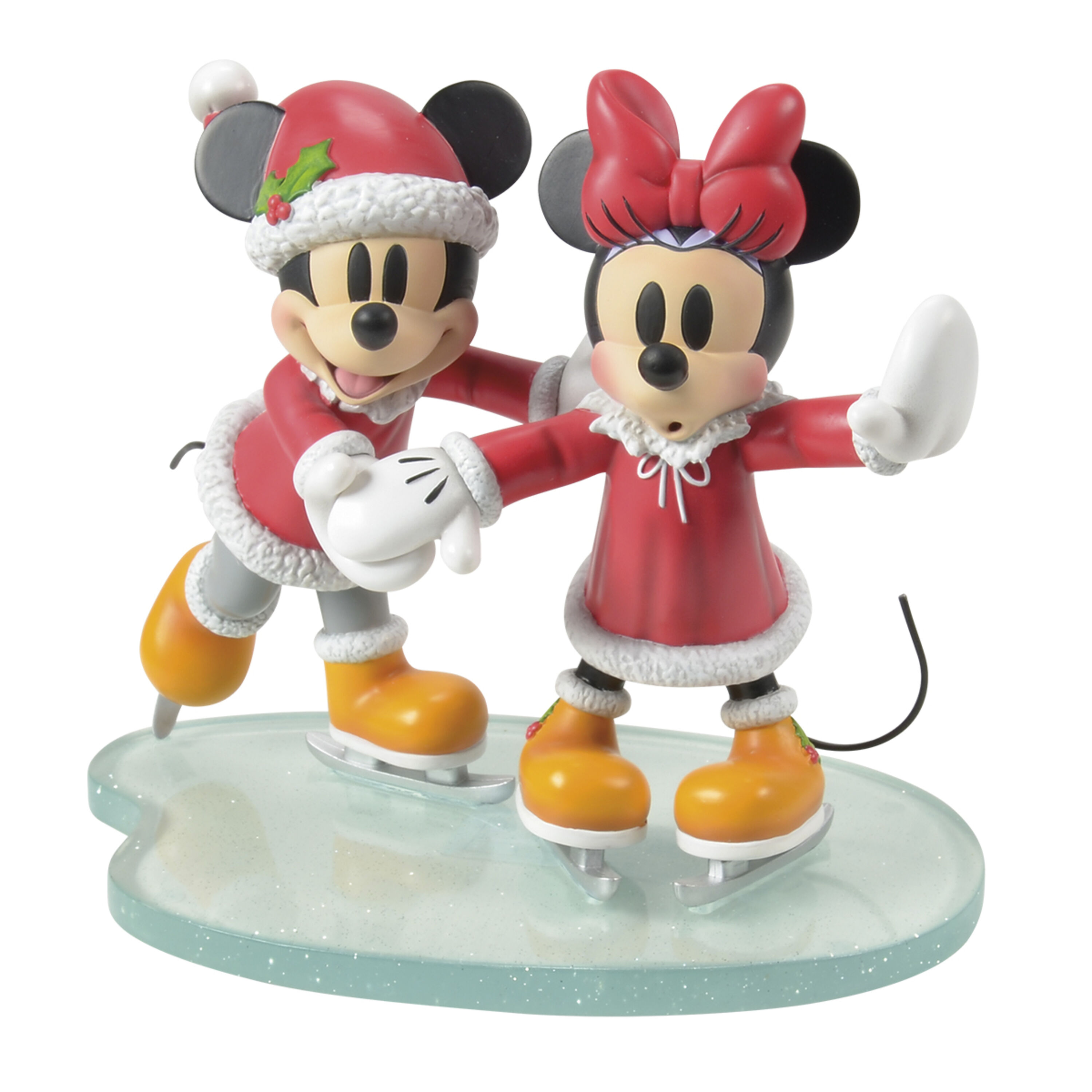 Mickey Mouse y Minnie Mouse celebran la temporada en esta festiva escena holiday . Mickey sostiene a Minnie con firmeza mientras se desliza por el estanque.