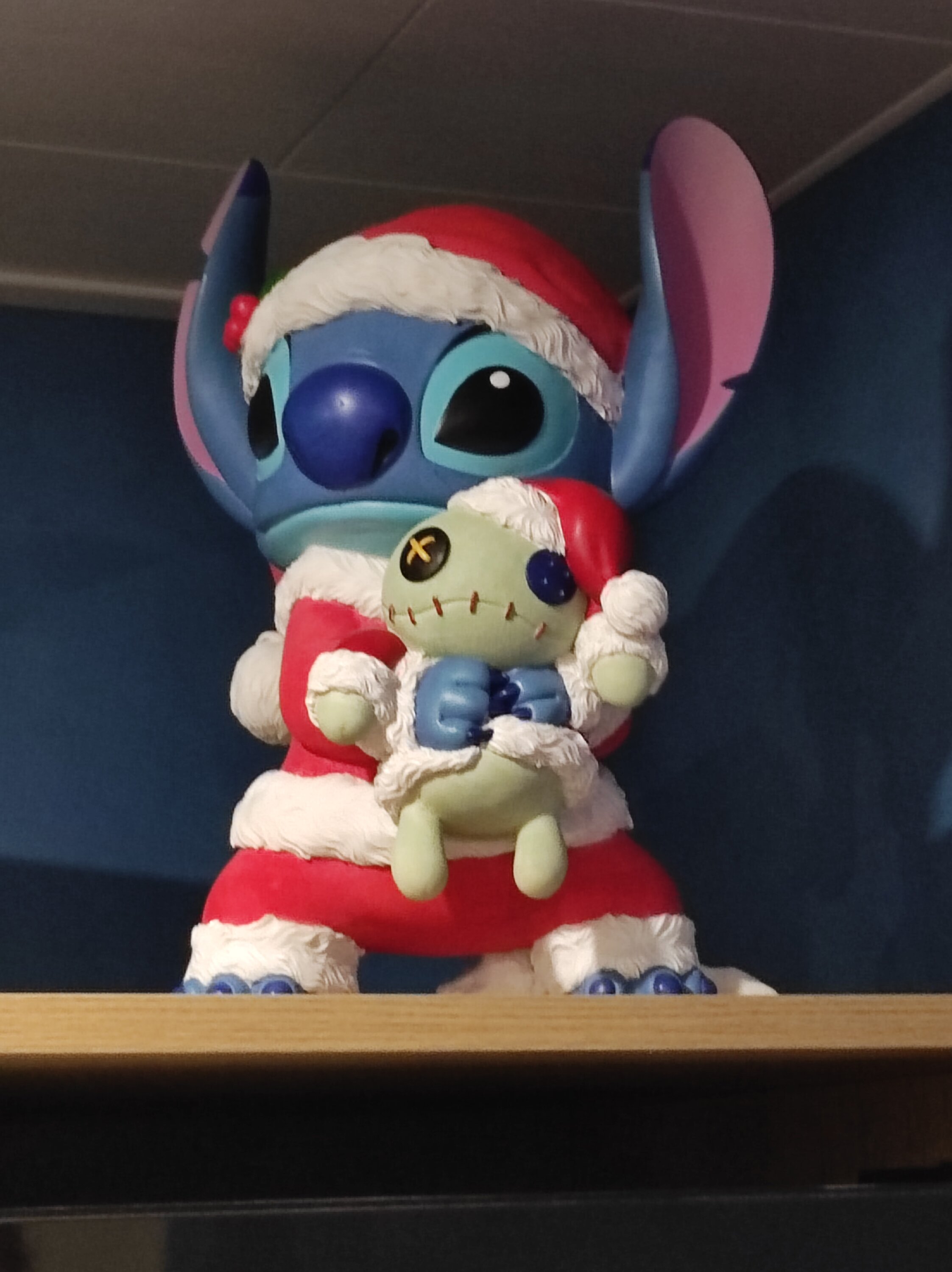 Aunque es más navideño es Stitch, lo admiro día a día. Y me encanta tenerlo en mi colección de Stitch, ya que soy fan de este personaje.