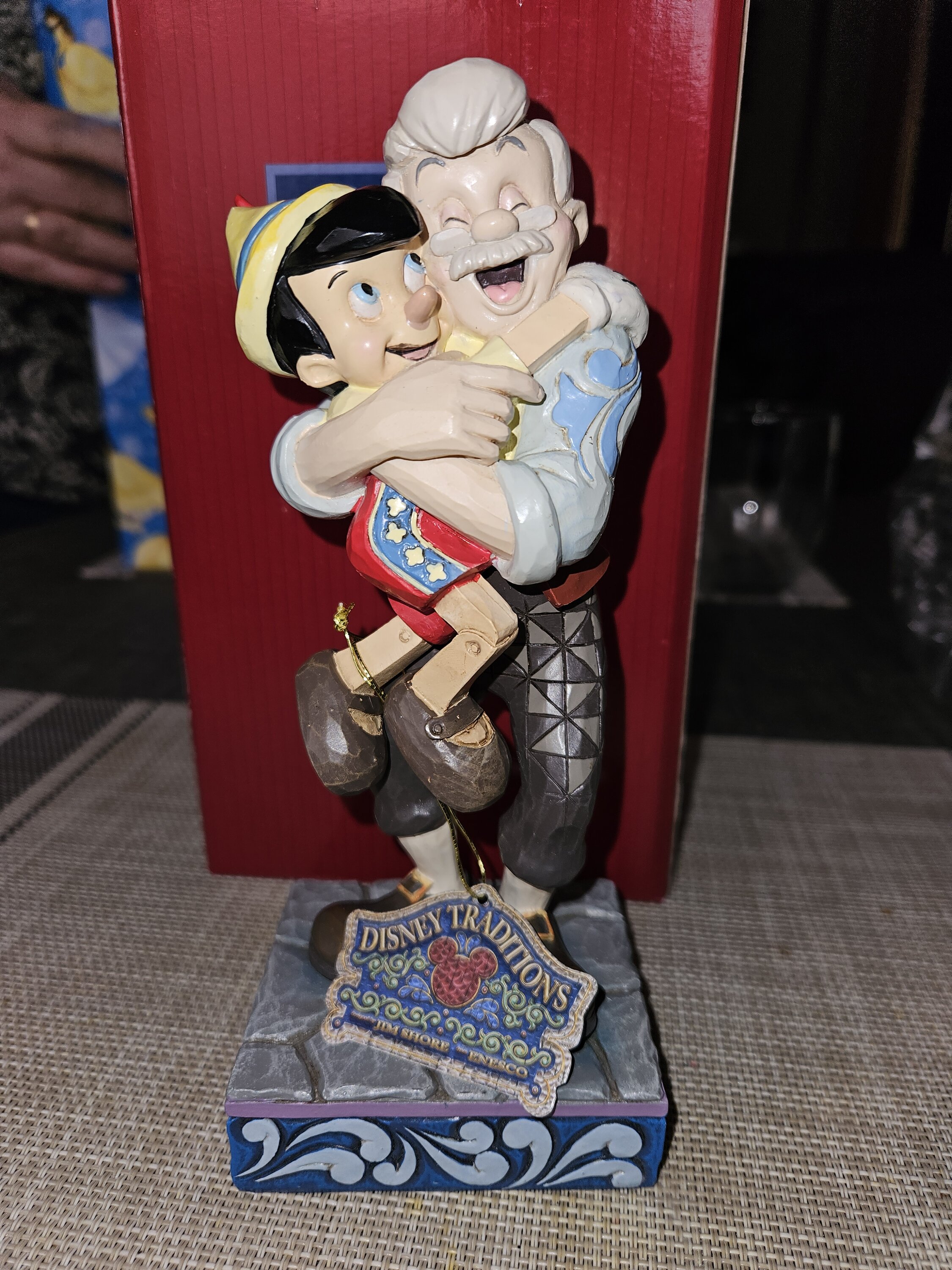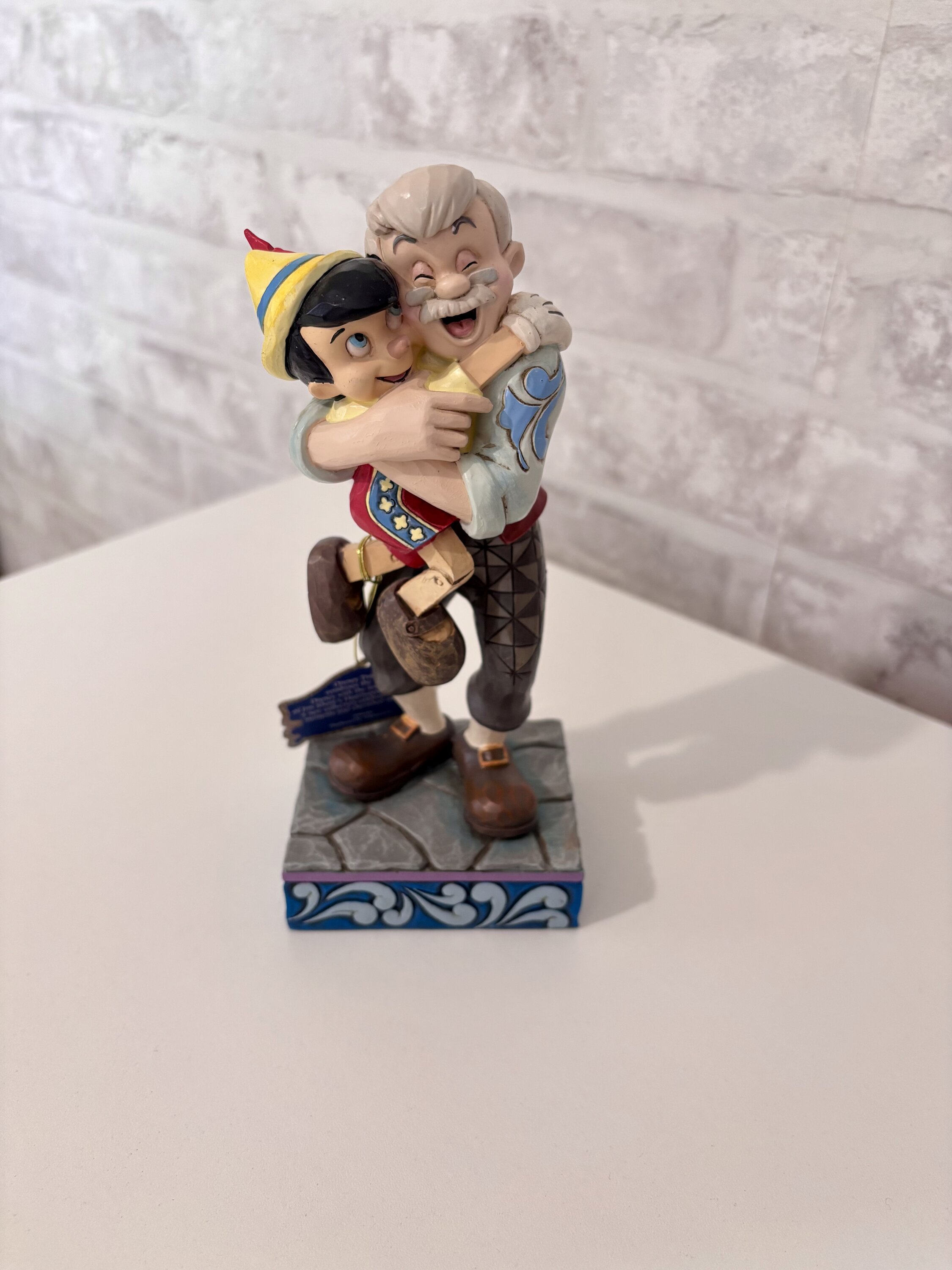 En esta figura Jim Shore logró capturar en un abrazo todo el cariño que un padre puede sentir por su hijo y Pinocho le corresponde, verdaderamente conmovedor y a la vez alegre gracias a Jim Shore.