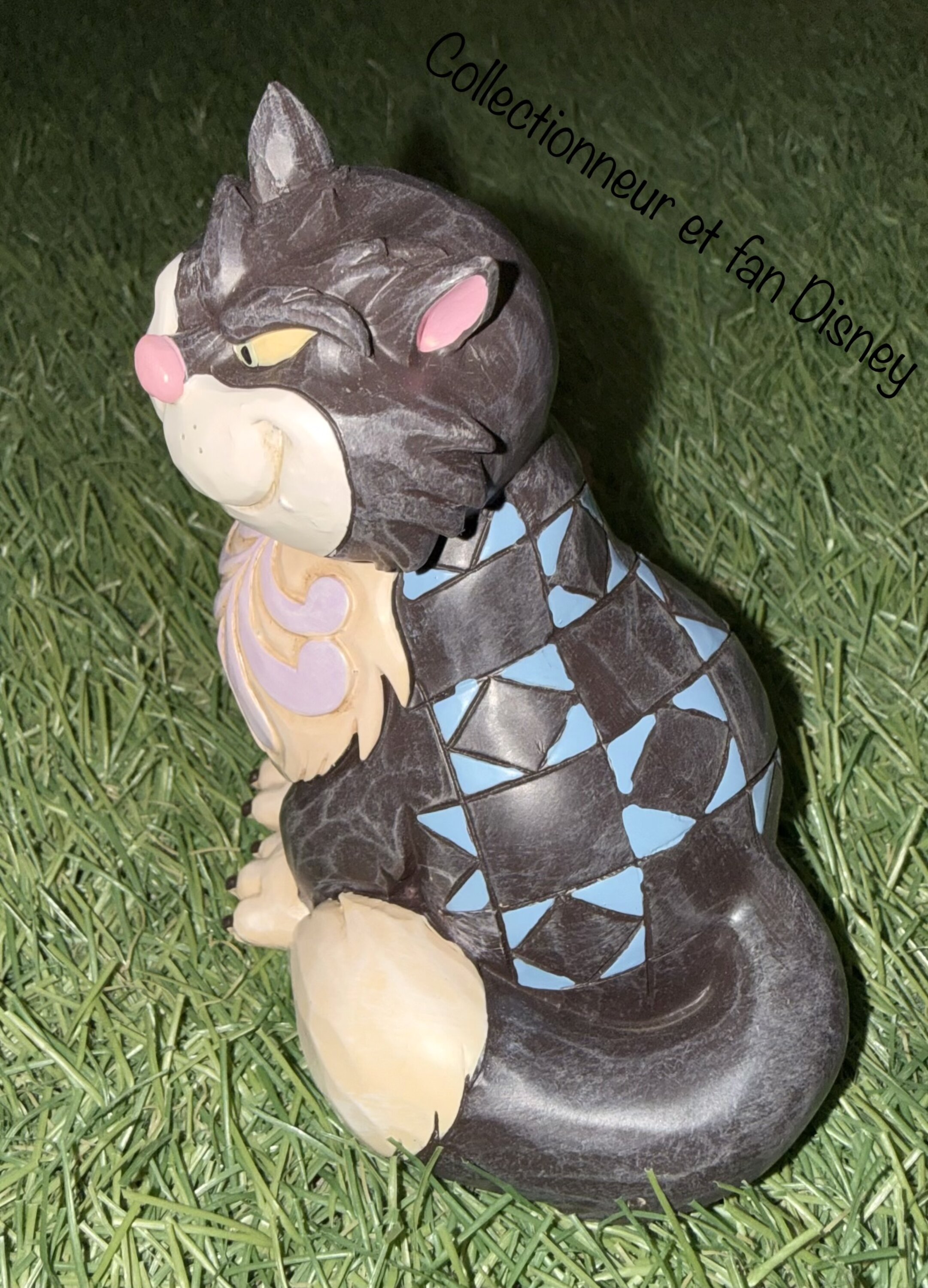 El gato Lucifer es el malvado cómplice de Lady Tremaine. Con una personalidad maliciosa, Lucifer es cruel con Cenicienta y sus amigos ratones. Este diseño de Jim Shore presenta la sonrisa torcida característica del gato con patrones de rosa y mosaico en su pelaje.