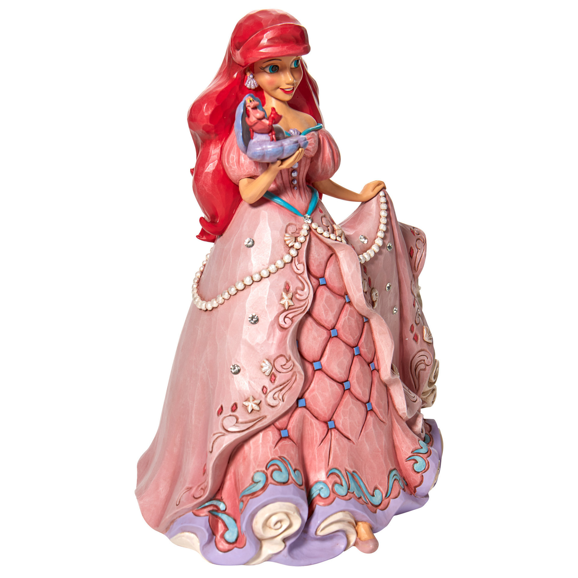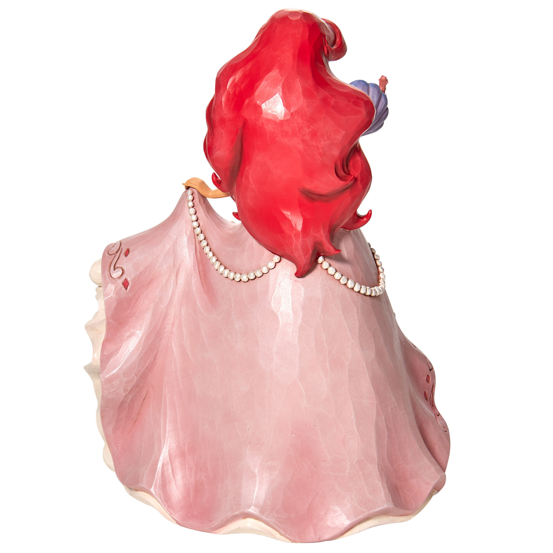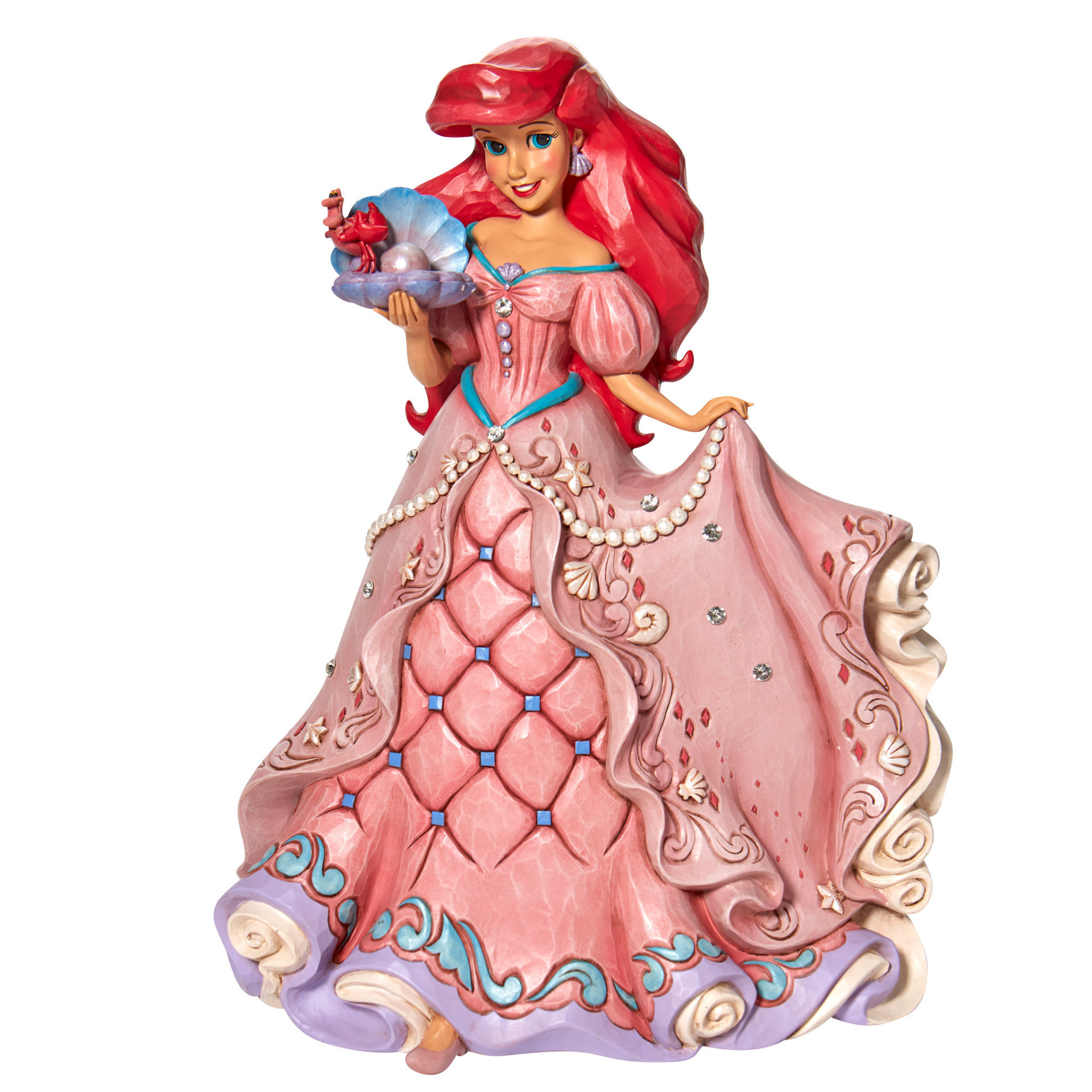Segundo diseño de la serie Princesas Encantadas, este diseño de Jim Shore presenta a Ariel con un hermoso vestido adornado con conchas y joyas, sosteniendo una ostra con una perla.
