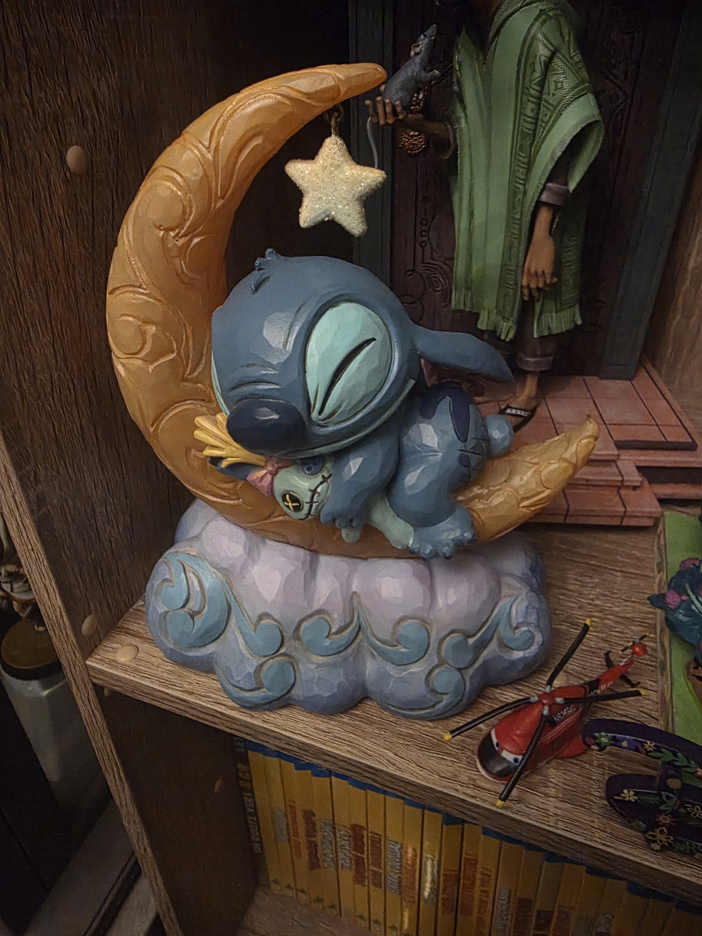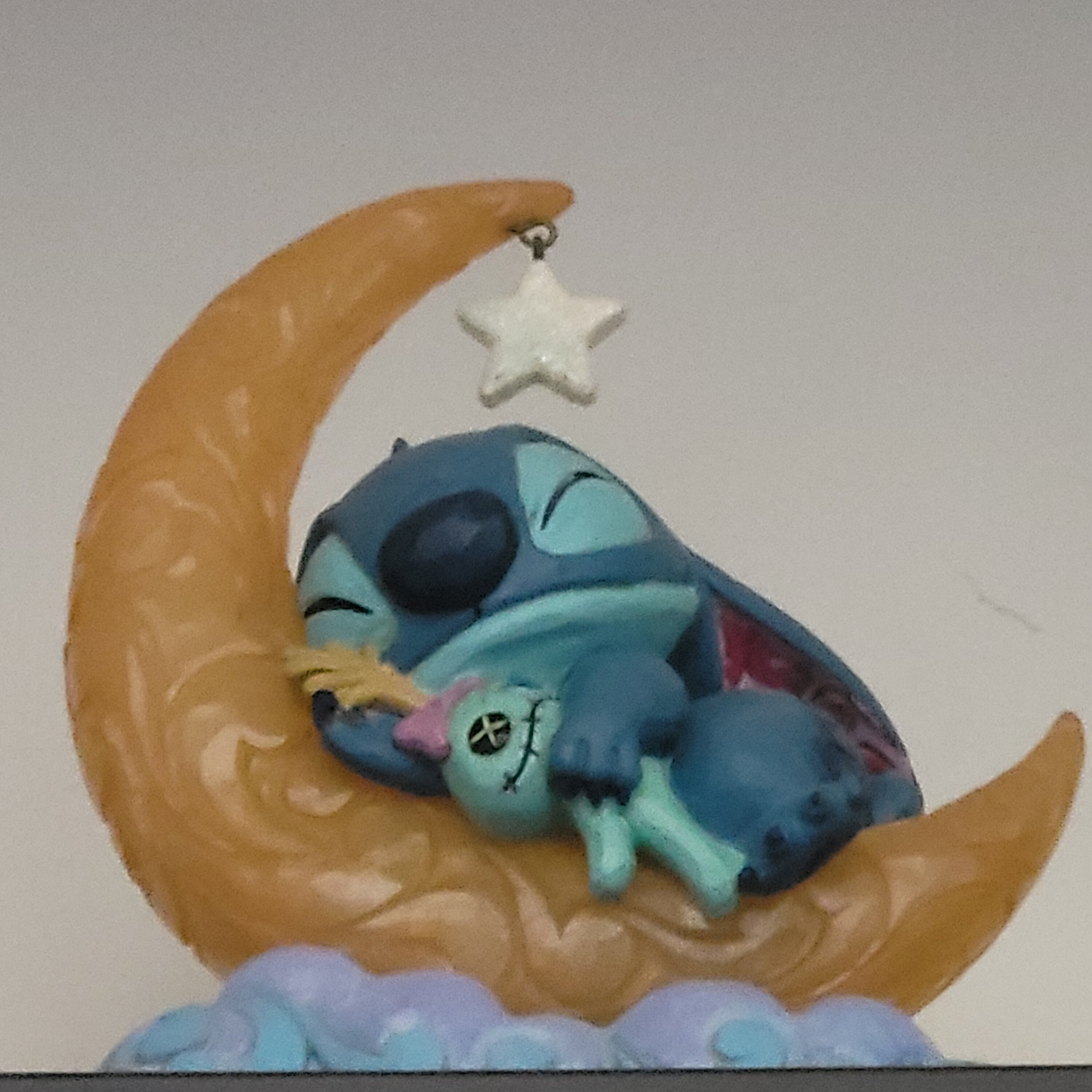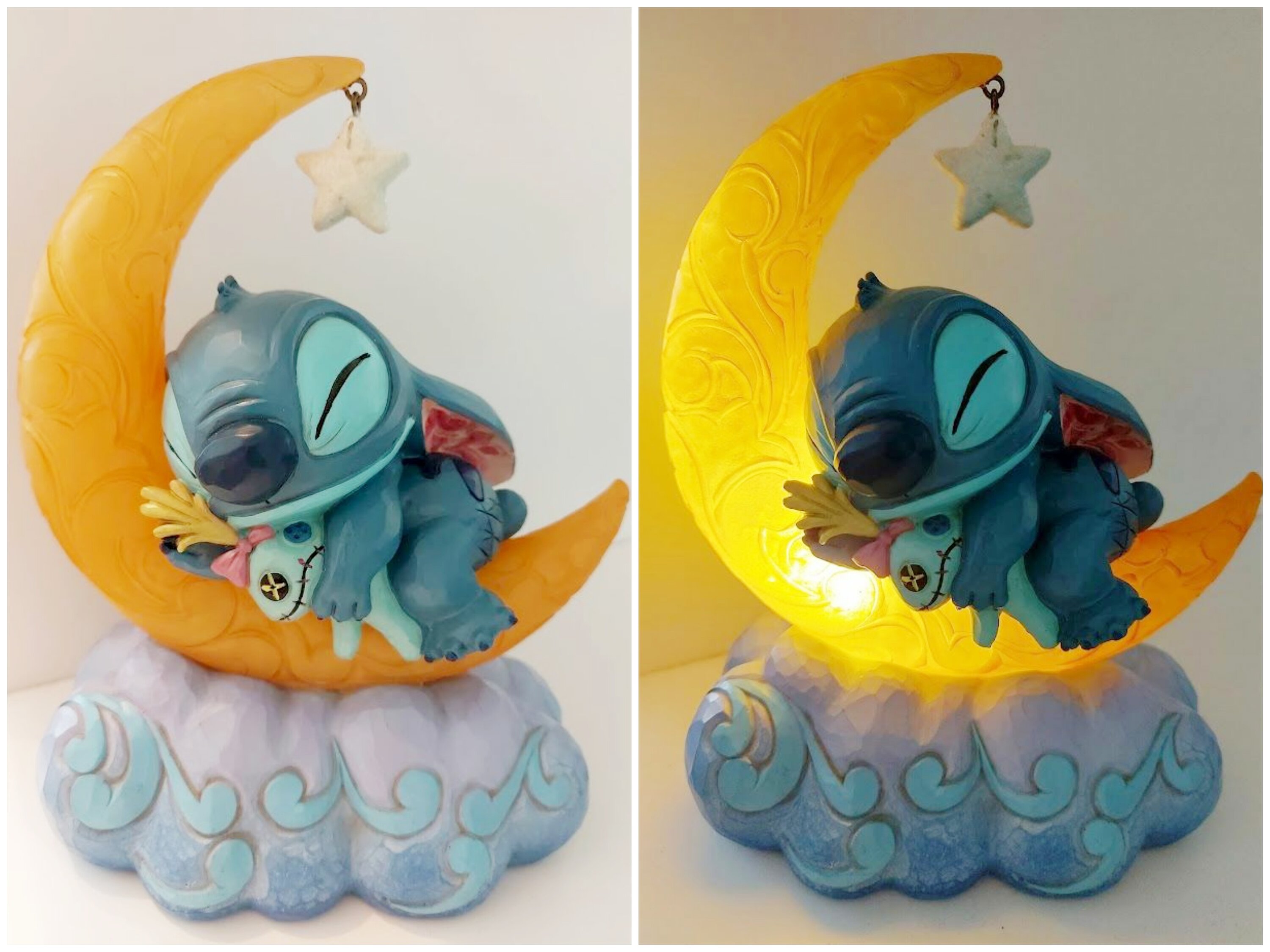 Ce stitch qui s illumine est magnifique et incarne la douceur de la nuit avec une lune illuminée magnifique. Merci Jim shore et cadeau city 🥰🥰😍🙏😘💙🌠❤