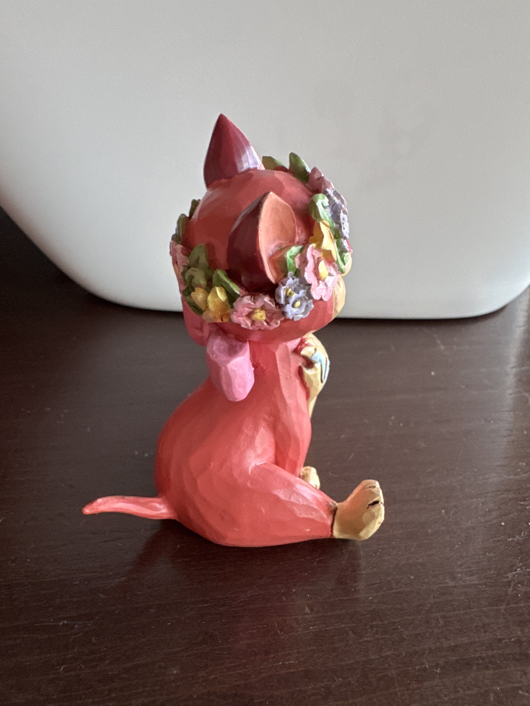 Este diseño exclusivo de Jim Shore presenta a Dinah, la gata de Alicia en el País de las Maravillas, adornada con una encantadora corona de flores y un intrincado rosemaling. Esta divertida pieza nos invita a aventurarnos por la madriguera del conejo hacia un mundo de imaginación y magia.