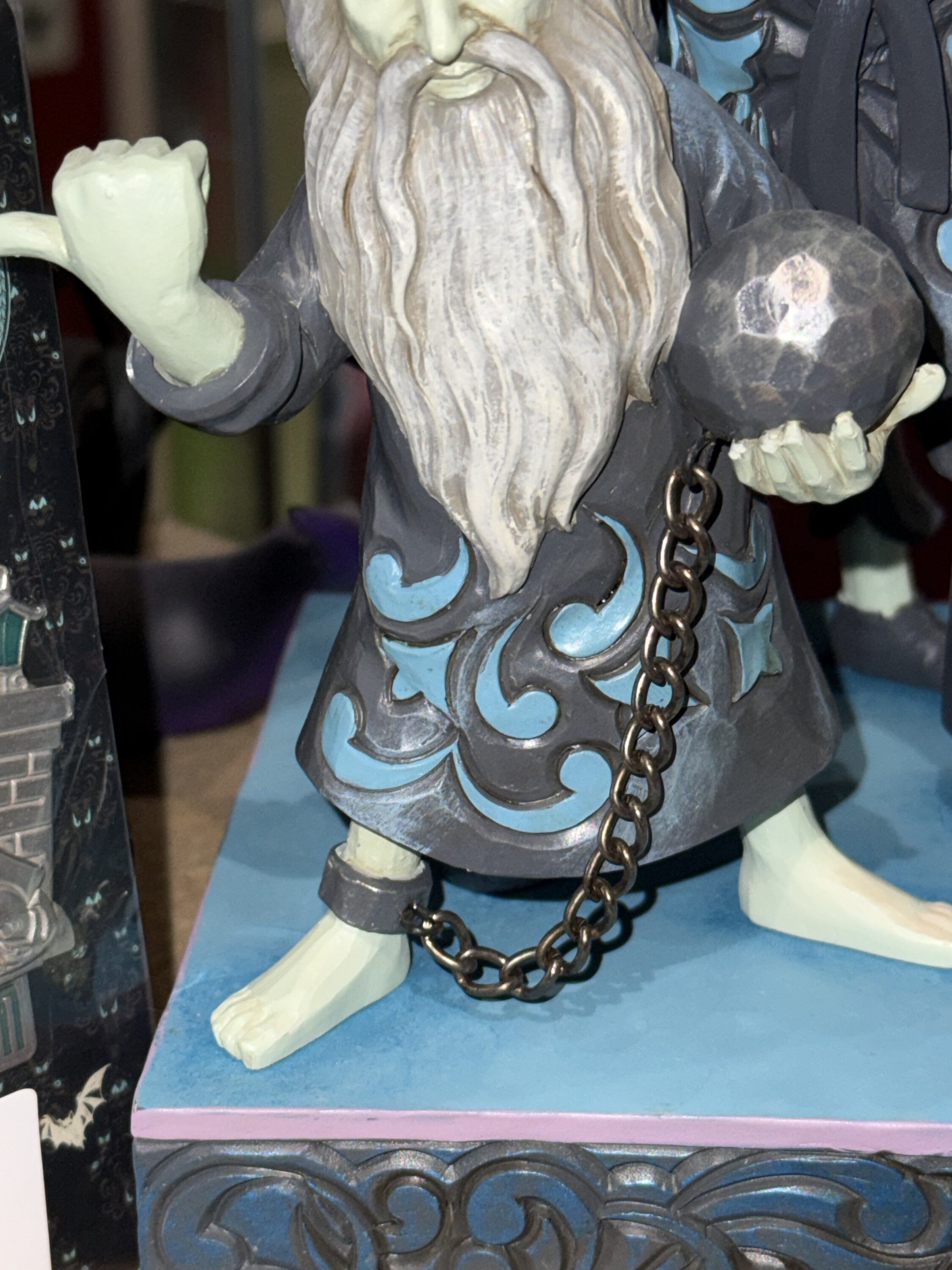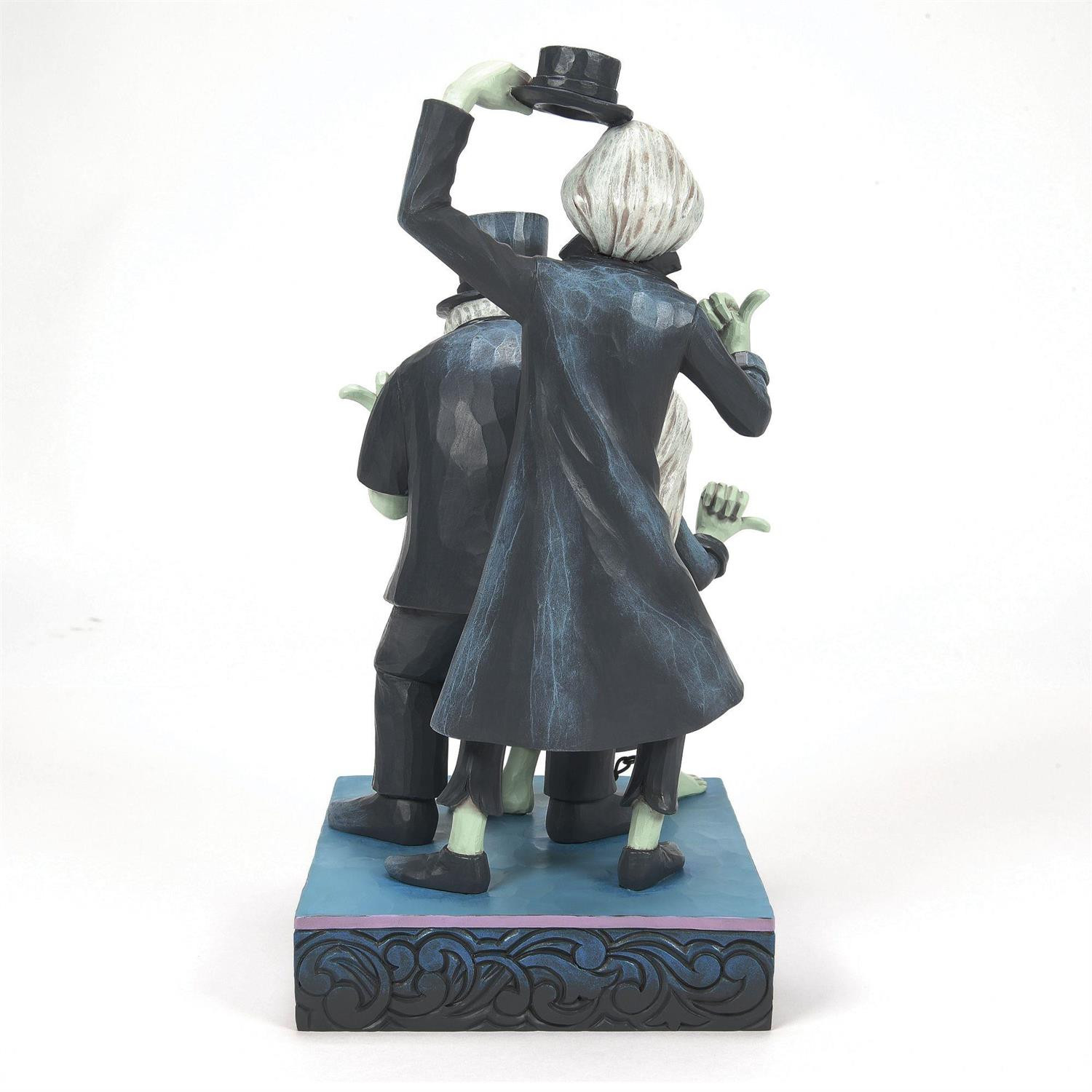 En esta figura de Jim Shore, los tres fantasmas que hacen autostop de la Casa Encantada están juntos, cada uno mostrando un pulgar con un patrón decorativo. Con miradas esperanzadas, buscan cruzar al más allá. Viene en una caja de regalo especialmente diseñada. Diseñado por el galardonado artista y escultor Jim Shore para la marca Disney Traditions. Estas figuras no son juguetes para niños. Destinadas solo para adultos.