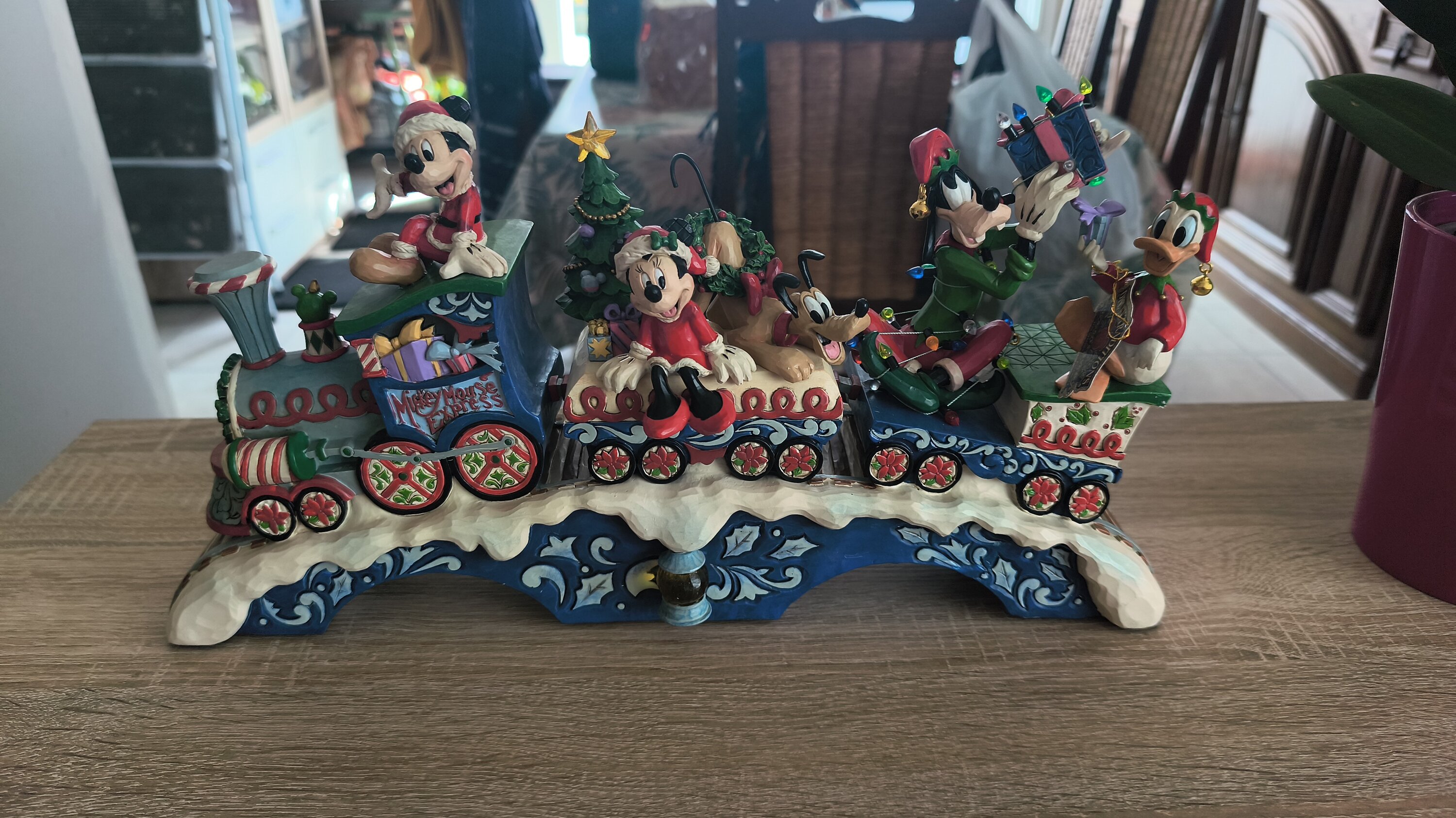 Un precioso tren navideño con música y luces. ¡Realmente fantástico! Por desgracia, tuvo que volver a la caja hasta Navidad. También estaría genial que la guirnalda de luces que rodea a Goofy estuviera iluminada.