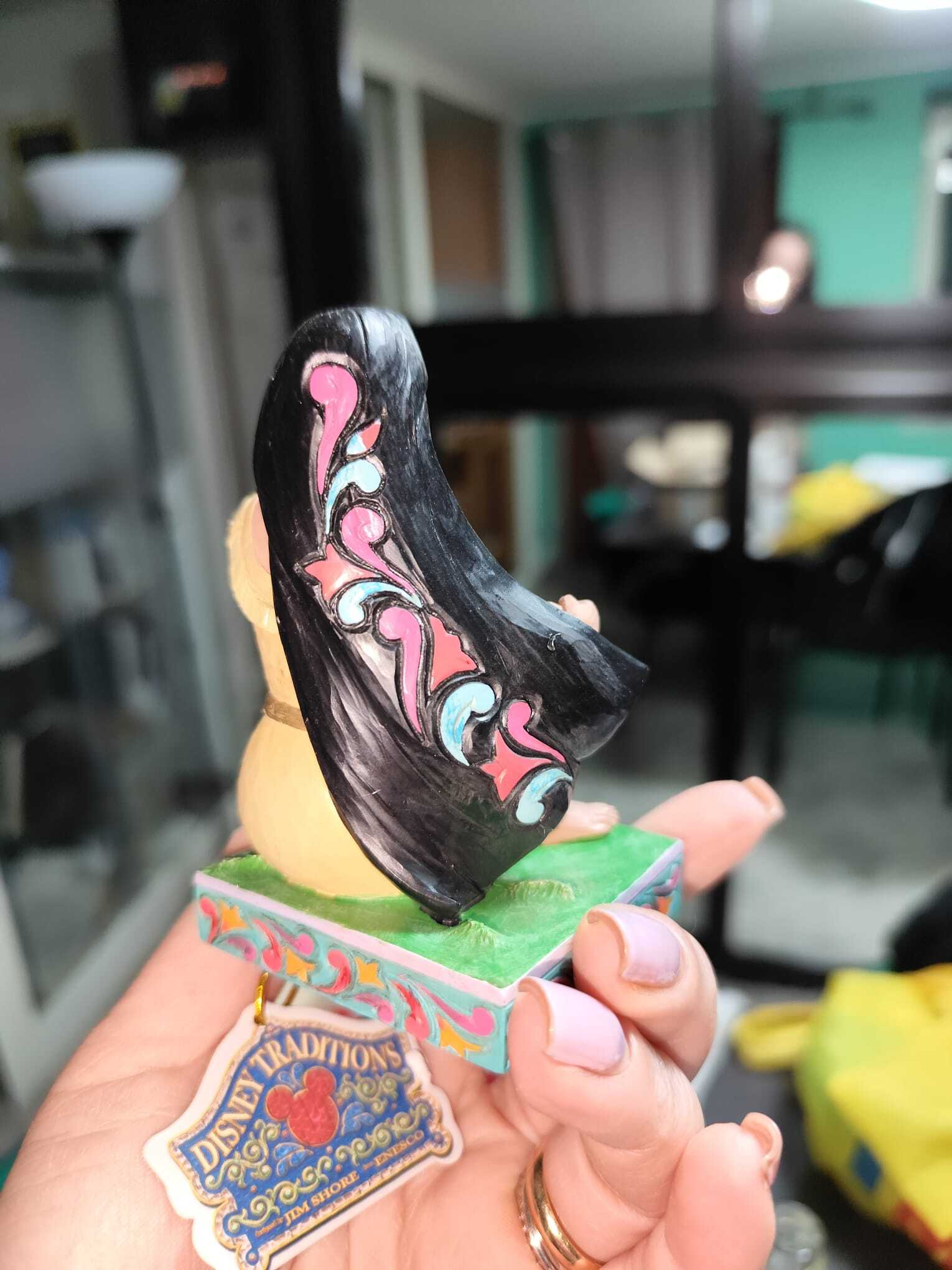 Celebra el 30 aniversario de Pocahontas con esta hermosa reinvención de Jim Shore. El patrón vibrante en la parte posterior del cabello de la princesa rinde homenaje al rico tapiz cultural de la película y al legado perdurable de coraje y armonía con la naturaleza.