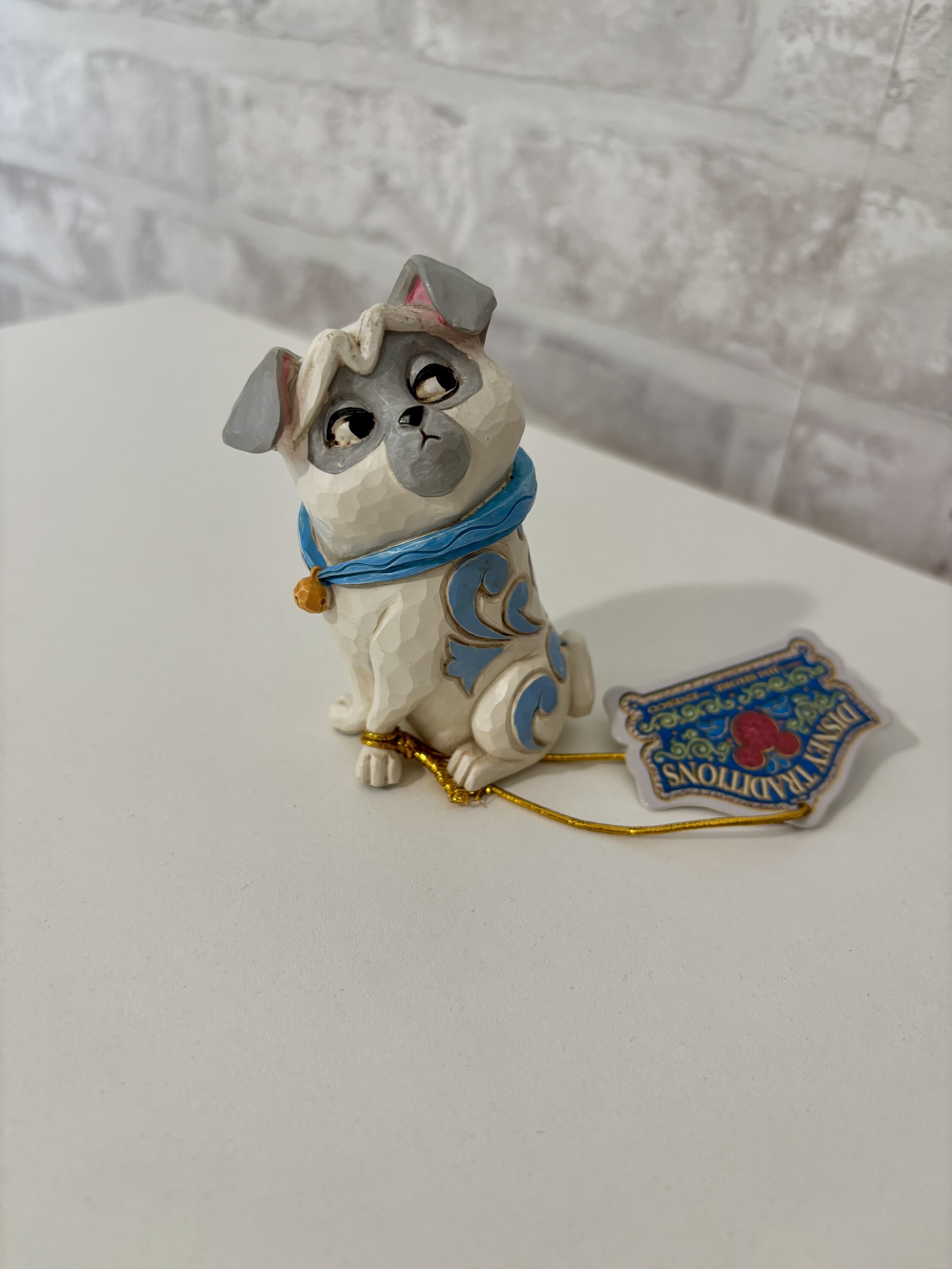 Celebra el 30 aniversario de Pocahontas con este encantador busto de Jim Shore de Percy, el mimado pug de Ratcliffe. Con su expresión descarada, luce un collar azul con cascabel y presenta el intrincado rosemaling del artista.