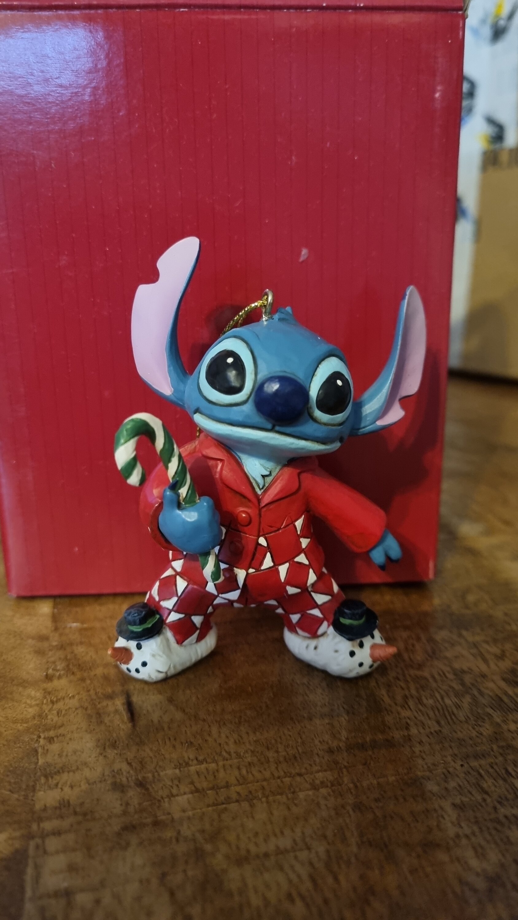 Stitch está listo para descubrir las sorpresas que la Navidad le depara en la mañana de Navidad . Este adorno colgante es perfecto para decorar tu árbol esta temporada festiva. Estas figuras no son juguetes para niños. Solo para uso de adultos. Altura: 9 cm