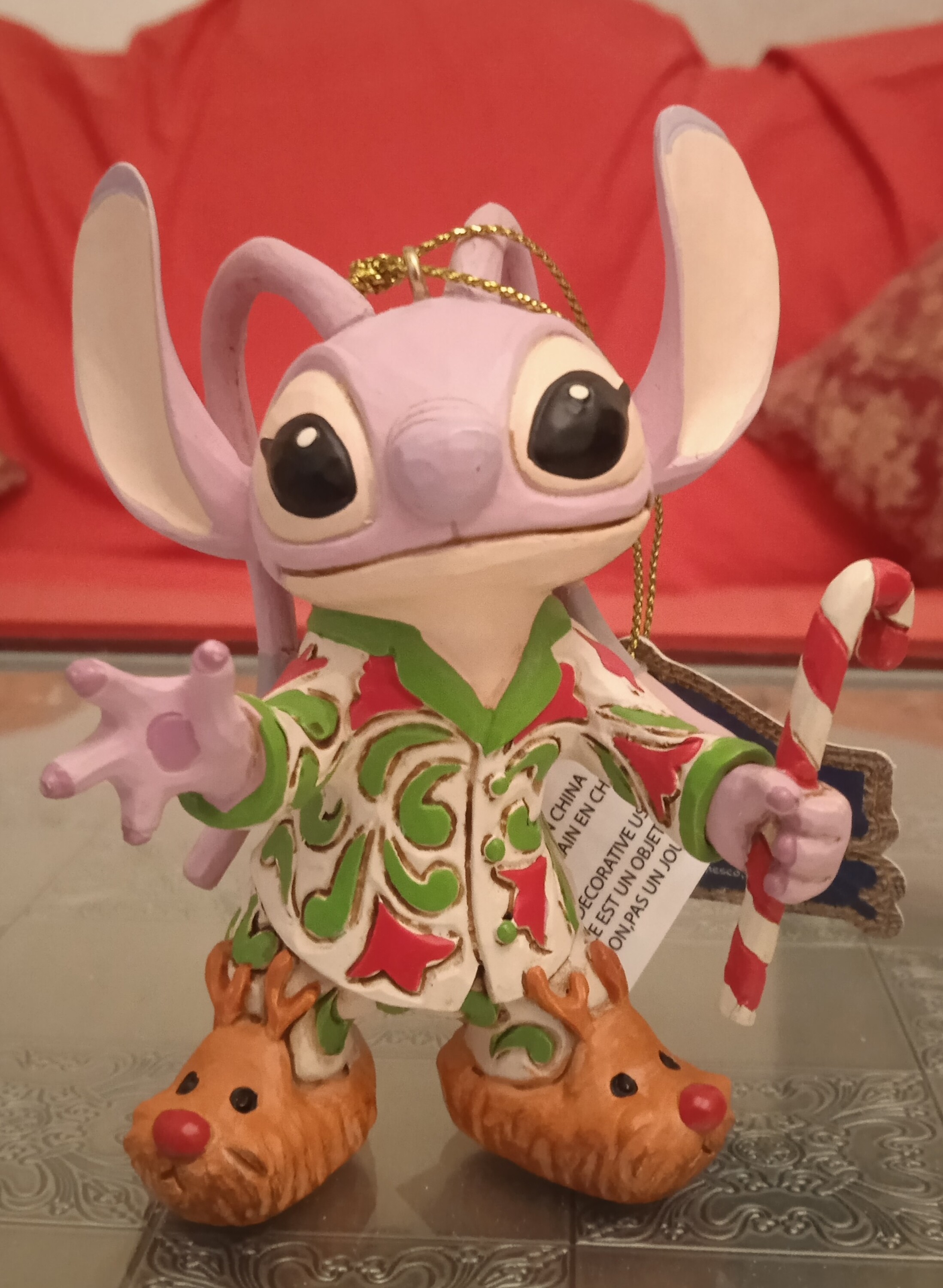 Angel está listo para descubrir qué le depara la Navidad esta mañana. Este adorno colgante es perfecto para decorar tu árbol esta temporada festiva y presenta a Angel, el pequeño amigo alienígena de Stitch. Estas figuras no son juguetes para niños. Solo para adultos.