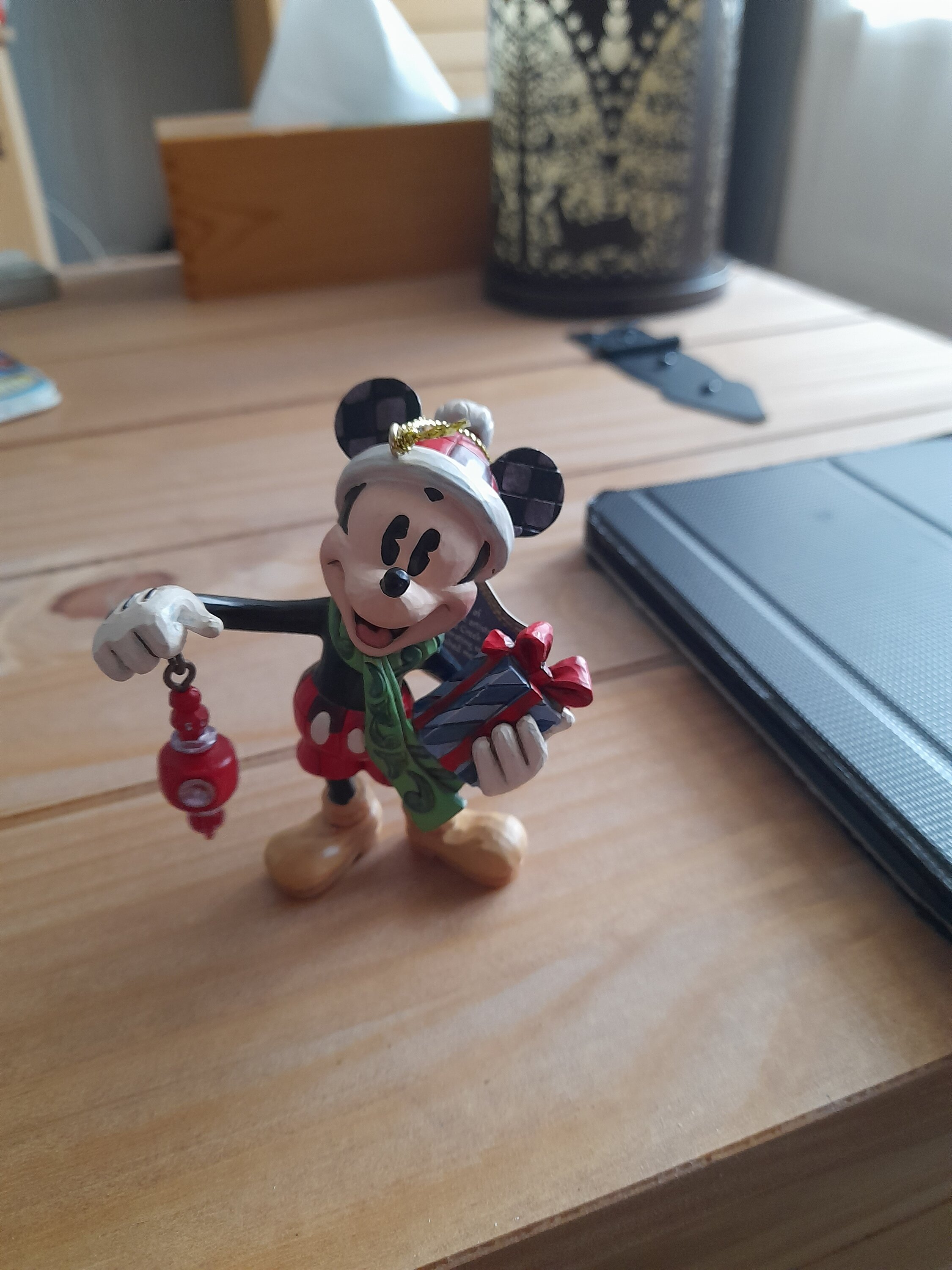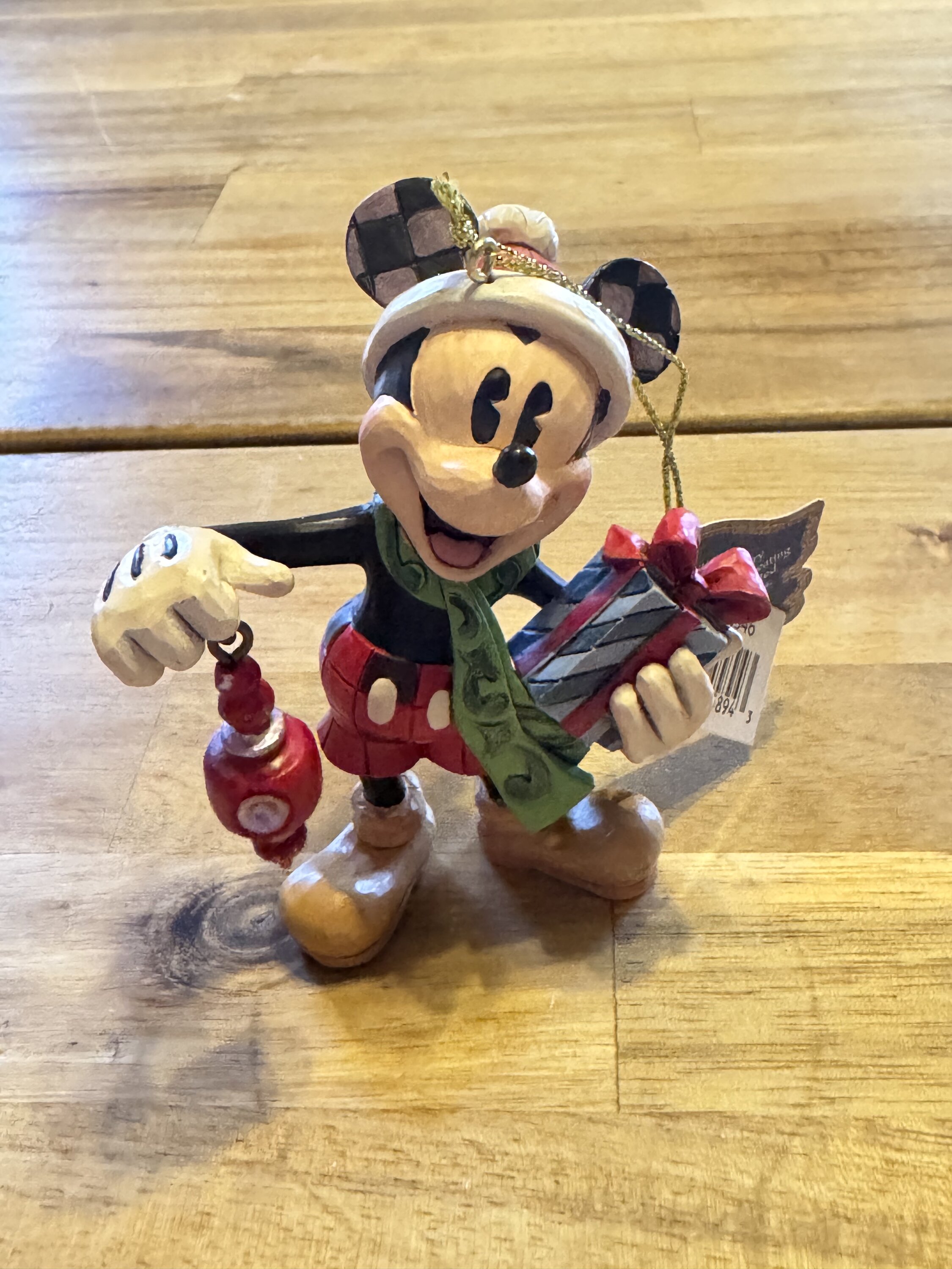 Este adorno colgante de Mickey Mouse con un regalo de Navidad forma parte de la colección Disney Traditions de Jim Shore . Perfecto para darle un toque mágico a tu árbol de Navidad . Diseñado por el galardonado artista y escultor Jim Shore para la marca Disney Traditions . Estas figuras no son juguetes para niños. Solo para uso de adultos.