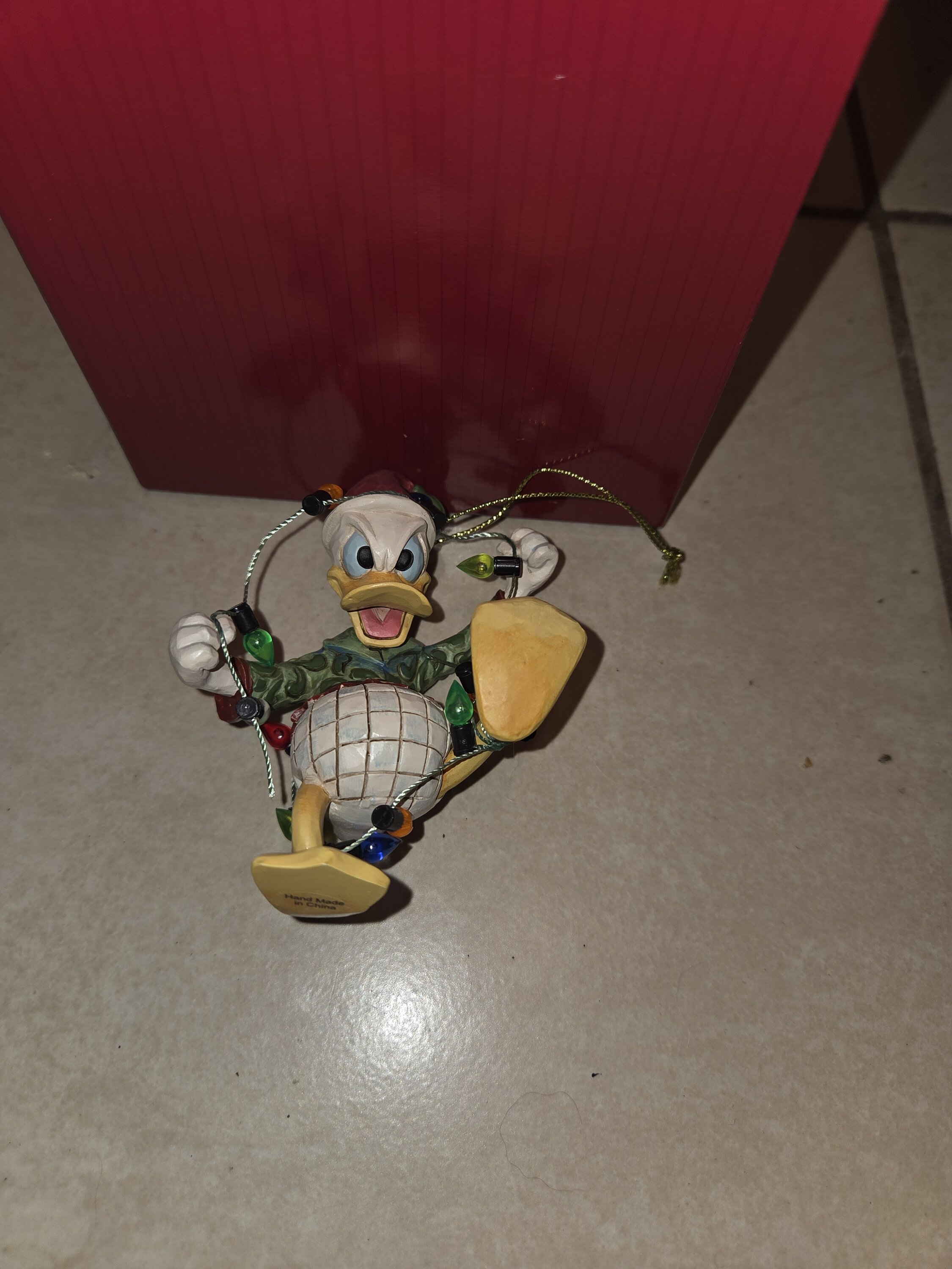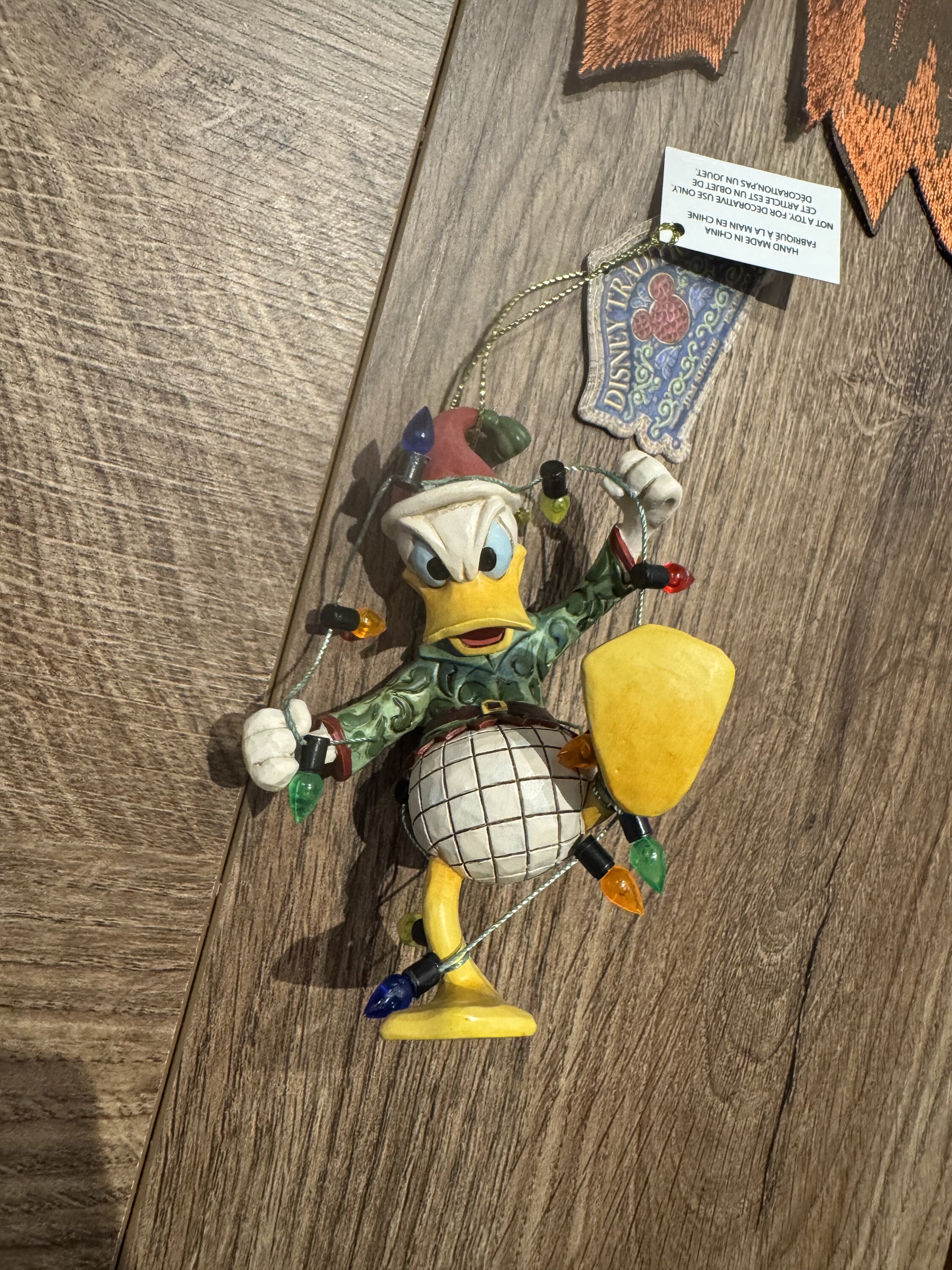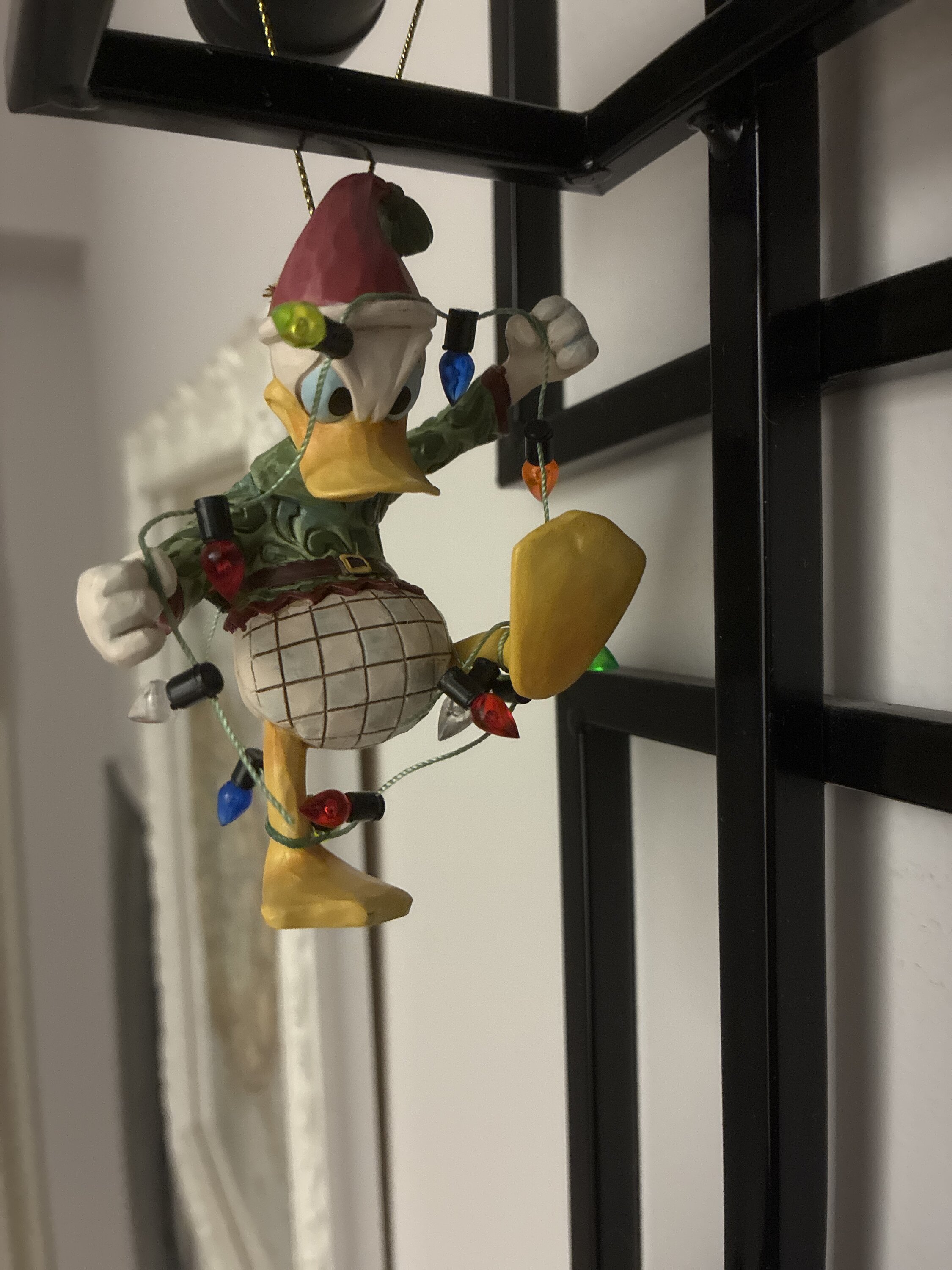 Un adorno muy bonito, con el Pato Donald intentando liberarse de las luces de Navidad. Precioso, como siempre. Será mi nuevo adorno para el árbol de Navidad.