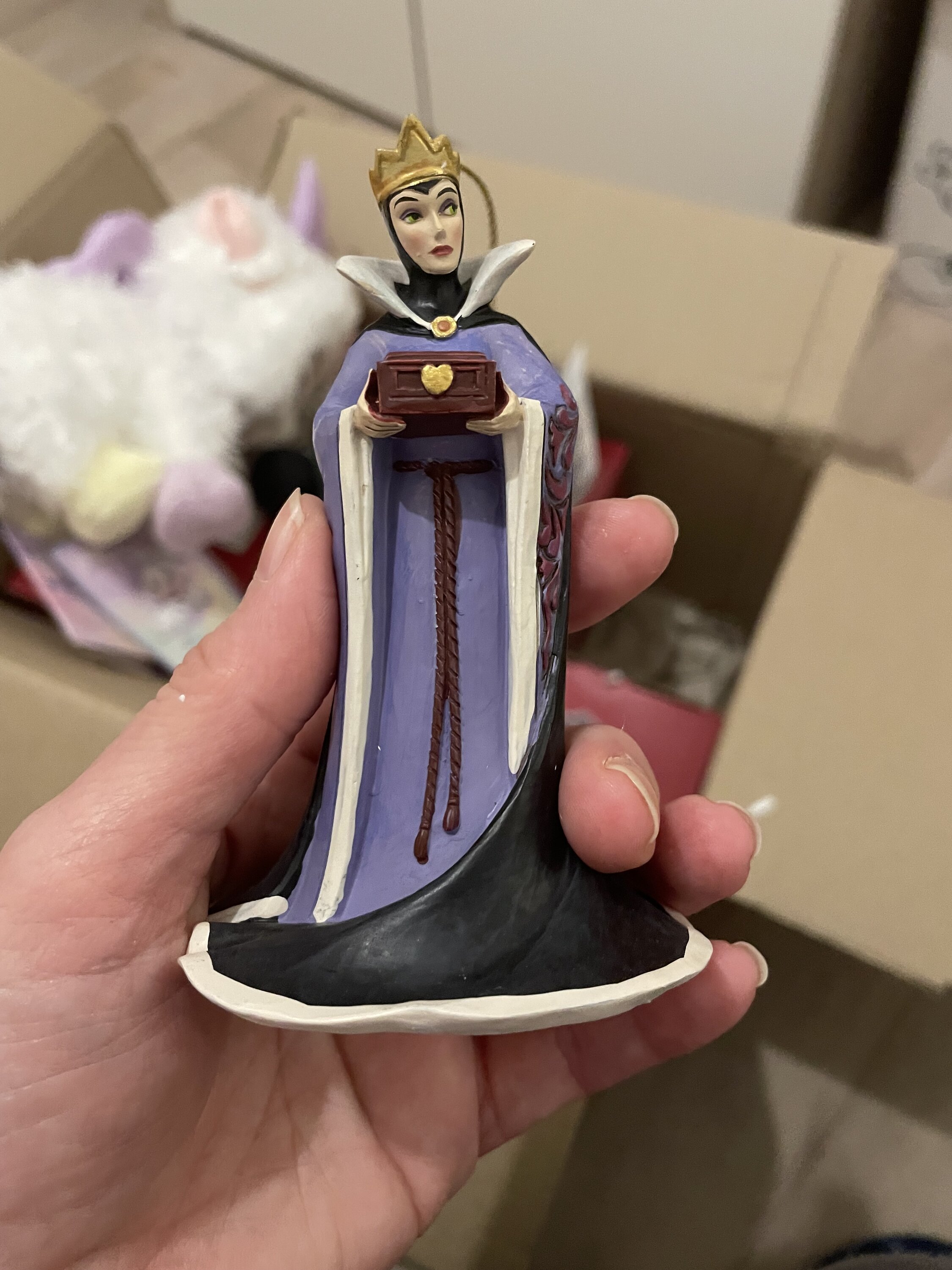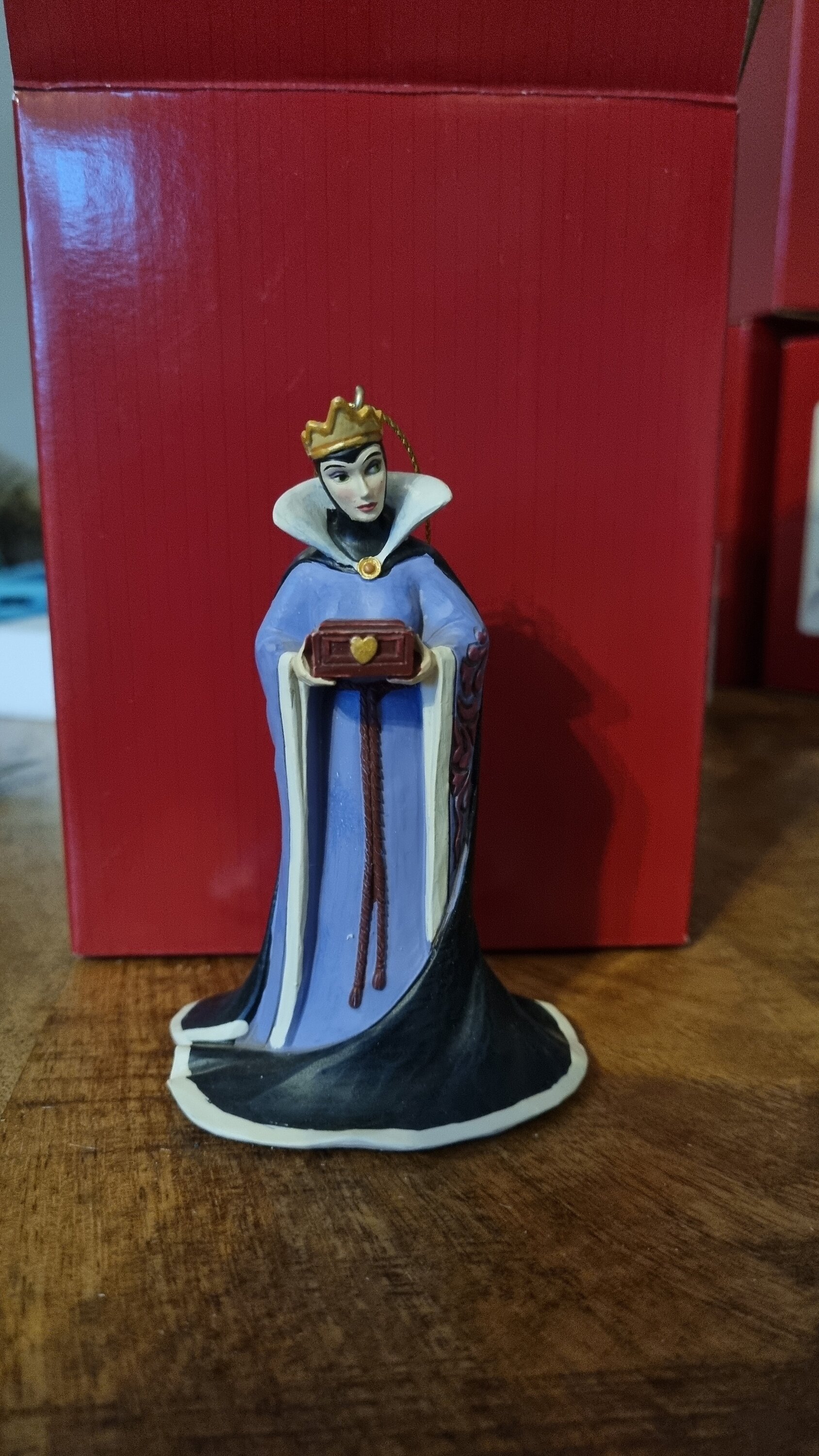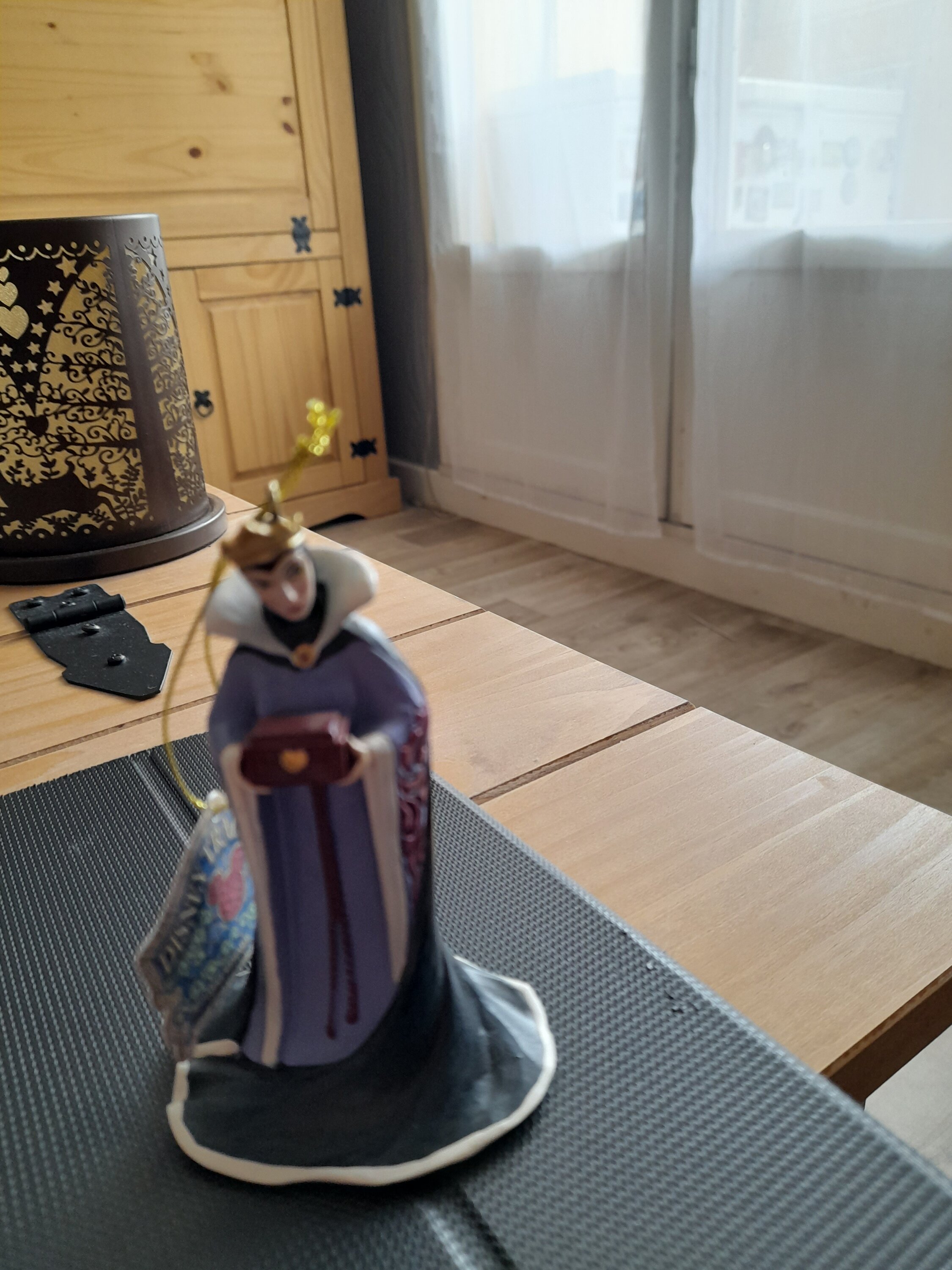 La mechante reine de Blanche Neige avec son coffret entre les mains, très bien réalisé