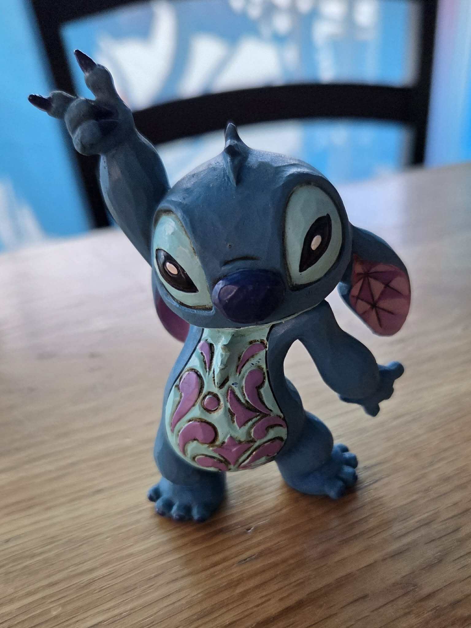 Este animado diseño de Jim Shore captura el espíritu juguetón de Stitch mientras baila con rosemaling en la panza y orejas estampadas. Ya sea el hula o Elvis, sus movimientos desenfadados están llenos de encanto y picardía.