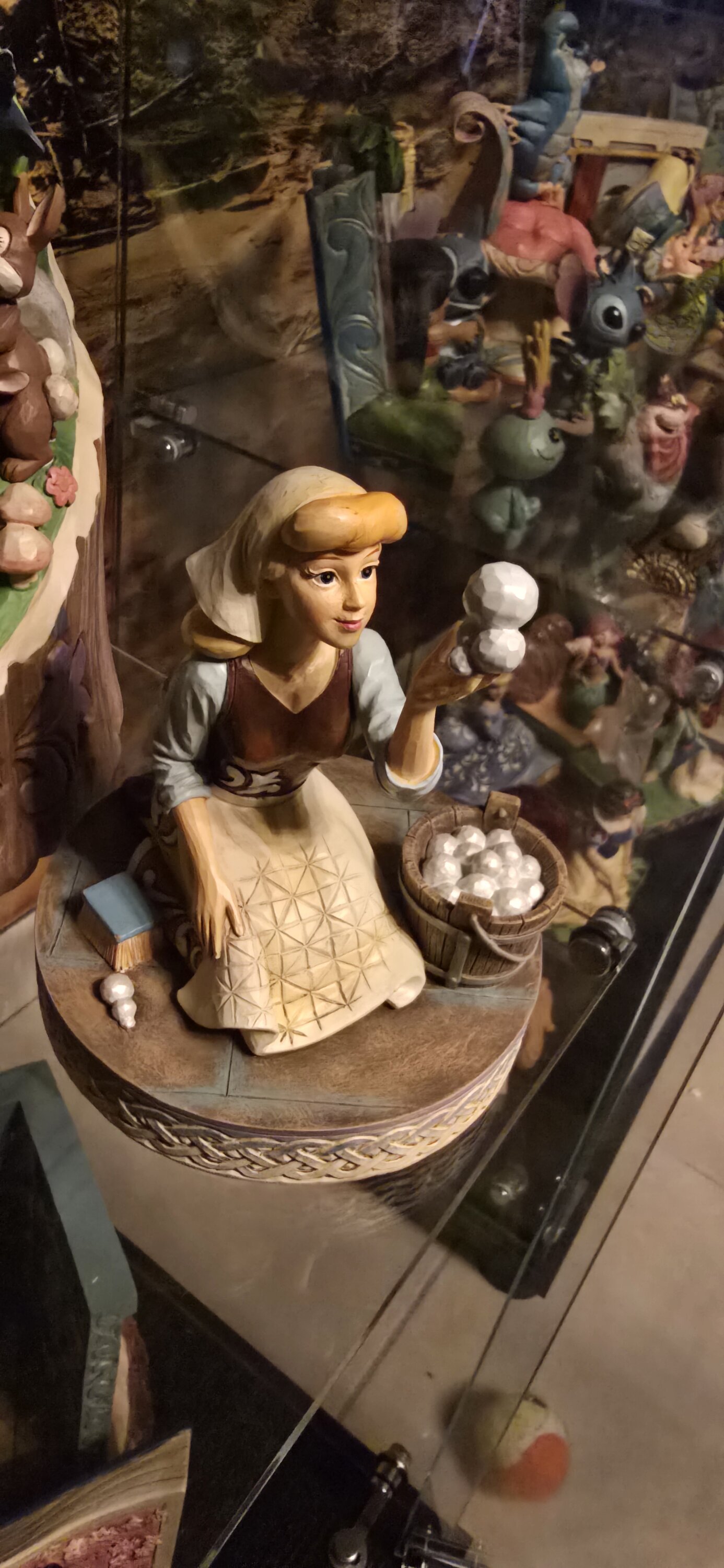 Superbe figurine pleine de détails qui rappelent l'une des scènes du dessin animé. Elle est vraiment minutieusement travaillée et reflète vraiment Cendrillon qui même en souillon reste magnifique! Une pièce indispensable que je recommande vivement.