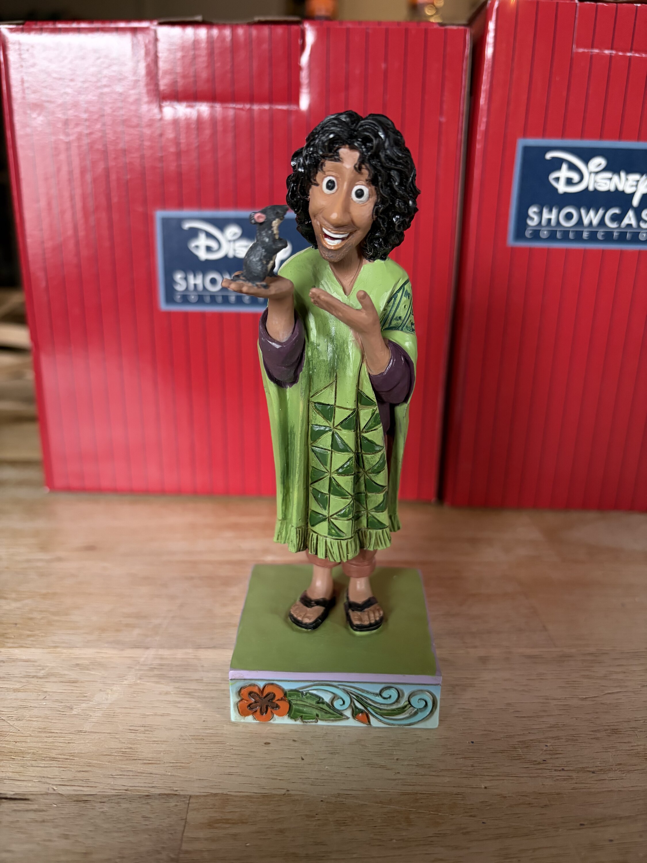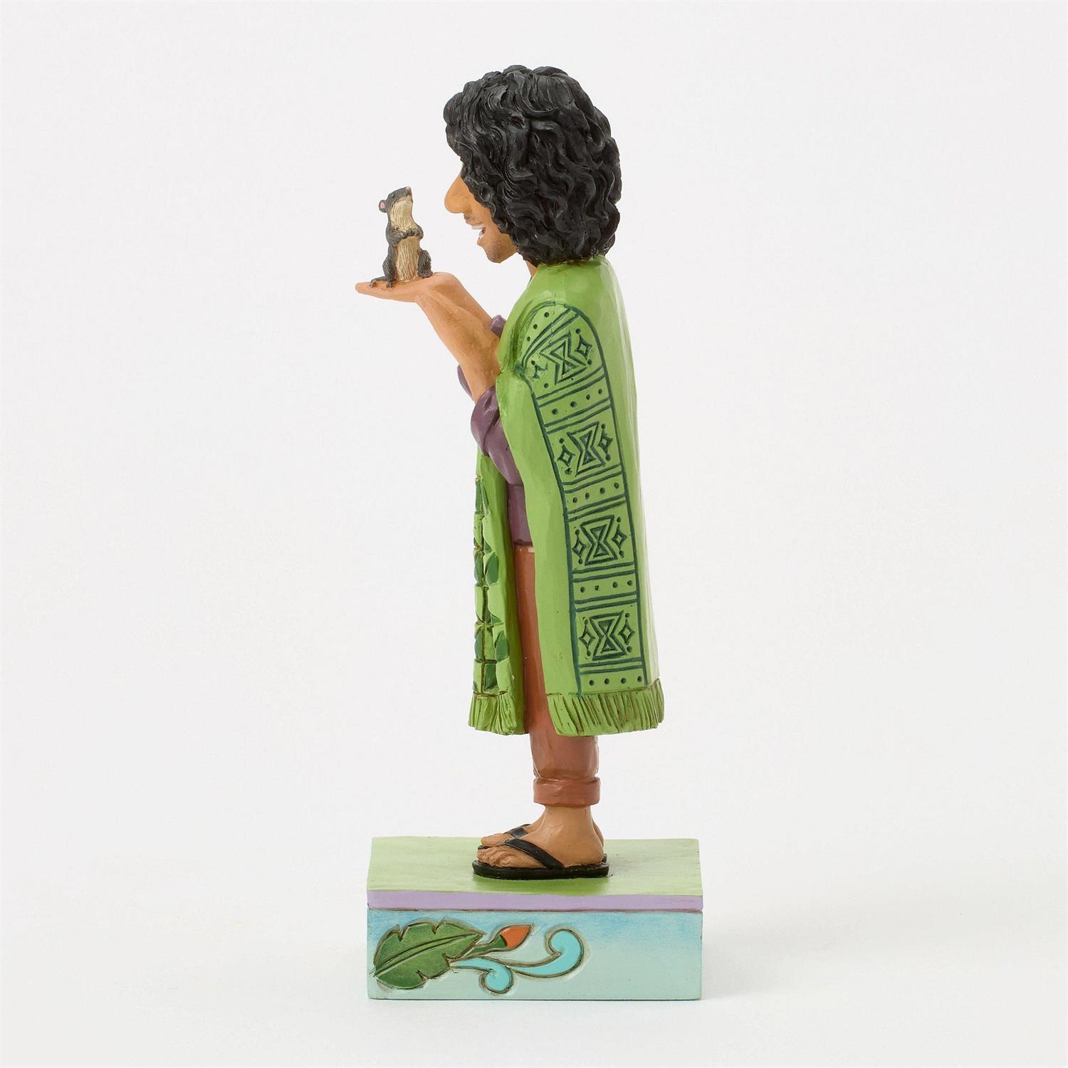 Jim Shore le da un toque más tierno a Bruno, el tío incomprendido de Encanto, en este emotivo diseño. Al representar a Bruno con un ratón, los patrones inspirados en el arte popular y los tonos seductores añaden encanto y ternura al personaje.