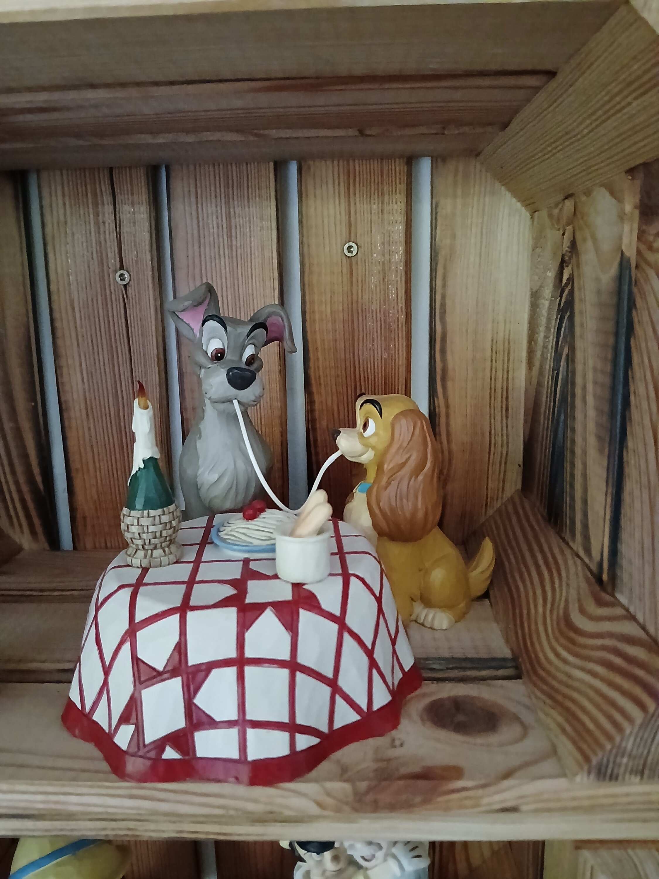 Très belle figurine représentant la scène mythique du film La Belle et Clochard au restaurant italien ♥️. On adore.🥰