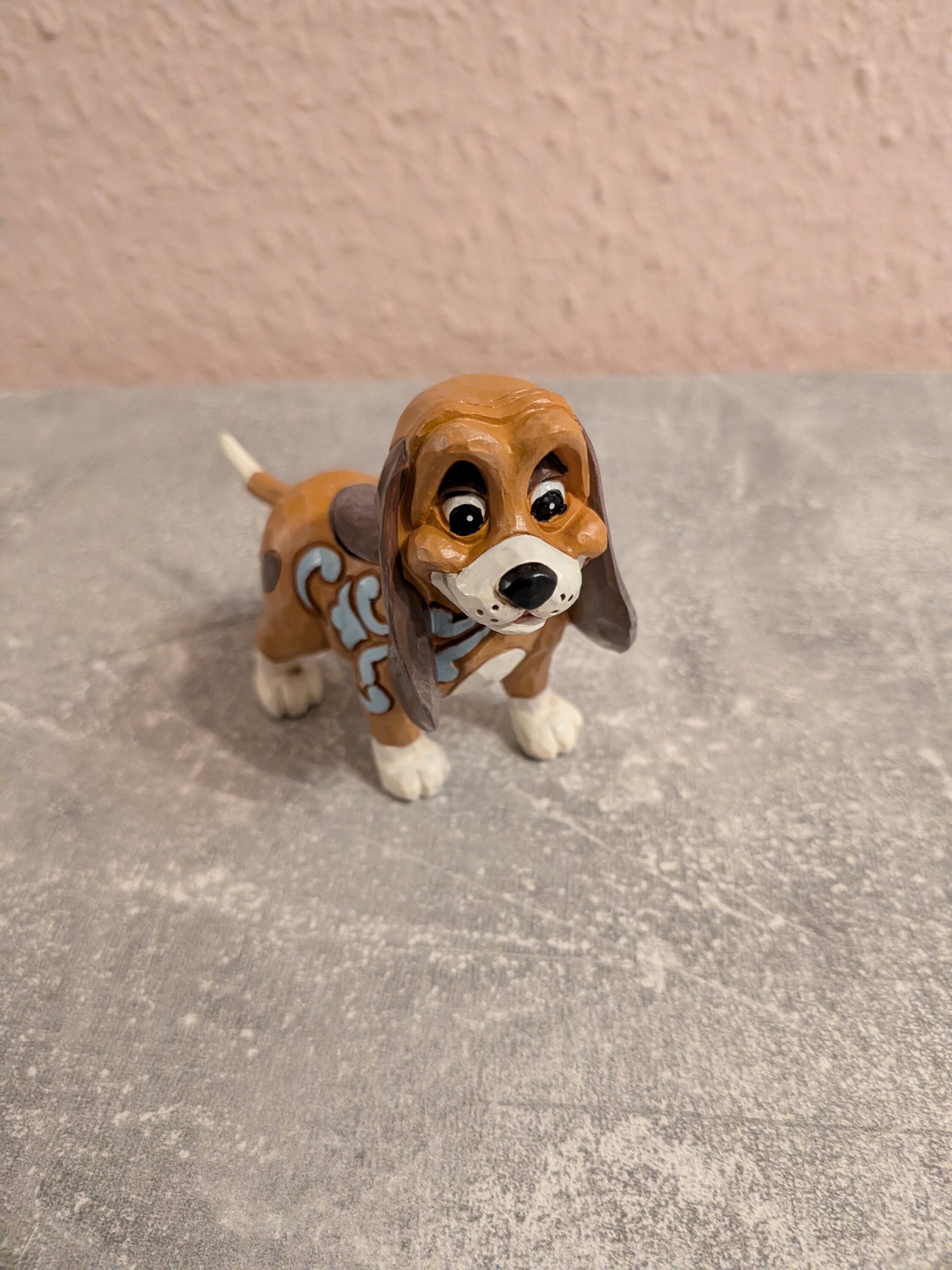 Esta encantadora miniatura de Jim Shore presenta a Copper, el sabueso, con intrincados patrones de rosemaling y una expresión emotiva. Probablemente esté buscando a su amigo, el Zorro, listo para su próxima aventura juntos en el bosque.